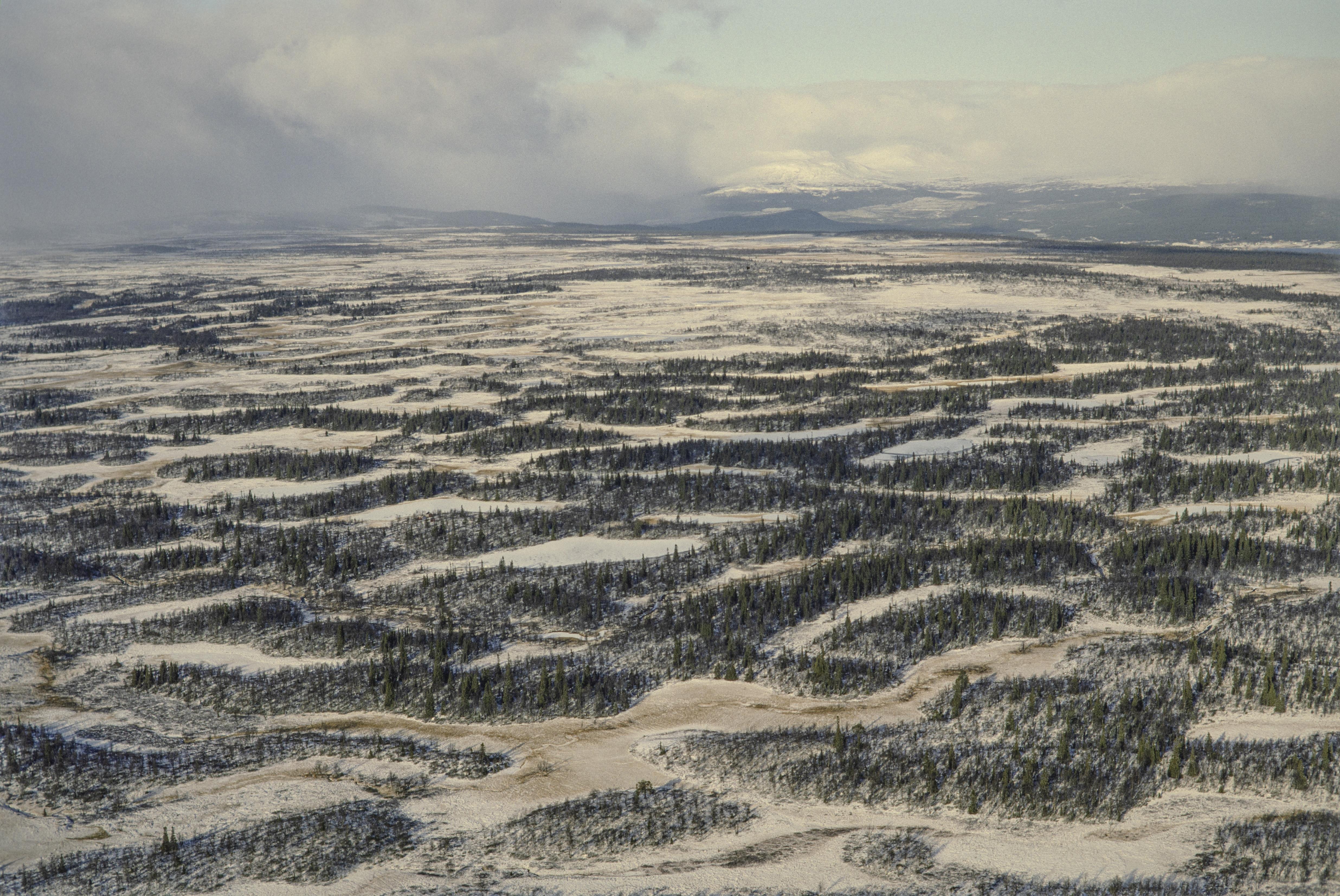 Beskrivning: Sjö- och myrområdet Brötarna, Gräsmyrarna och Stor-Gräsmyråsen. aI området fångstgrop RAÄnr Storsjö 151:1 m.fl. Fjället Högrensvålen (Gåertiesvaarta) i bildens övre del. Bilden är tagen mot (väderstreck): VNV