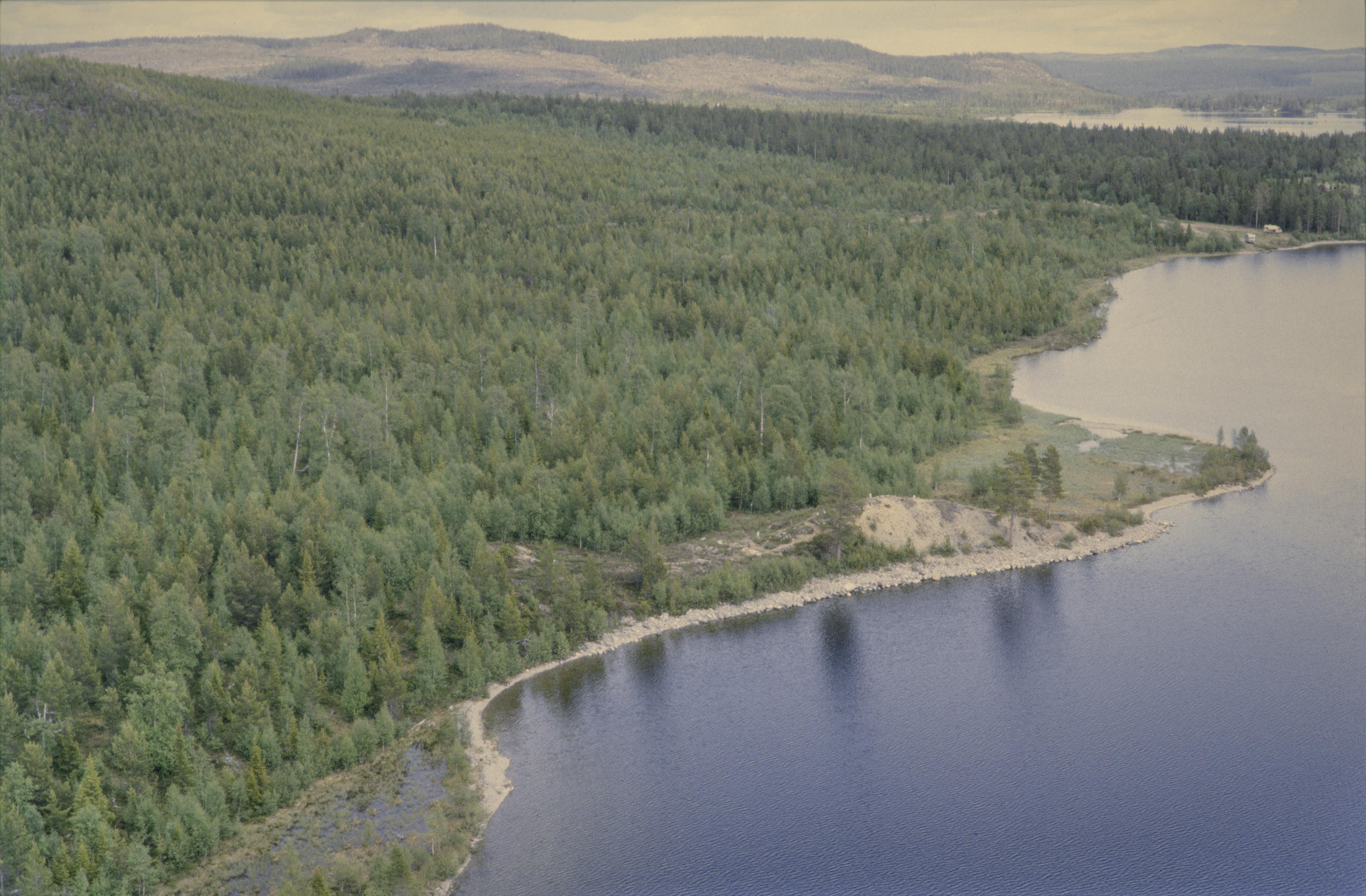 Beskrivning: Till höger om bildens mitt gravfält Krankmårtenhögen (skrivs även (Krank-Mårtenhögen) RAÄnr Storsjö 9:1 vid Storsjön. I området även boplats RAÄnr Storsjö 154:1 och 254:1, fångstgrop Storsjö 155:1 m.m. Bilden är tagen mot (väderstreck): ONO