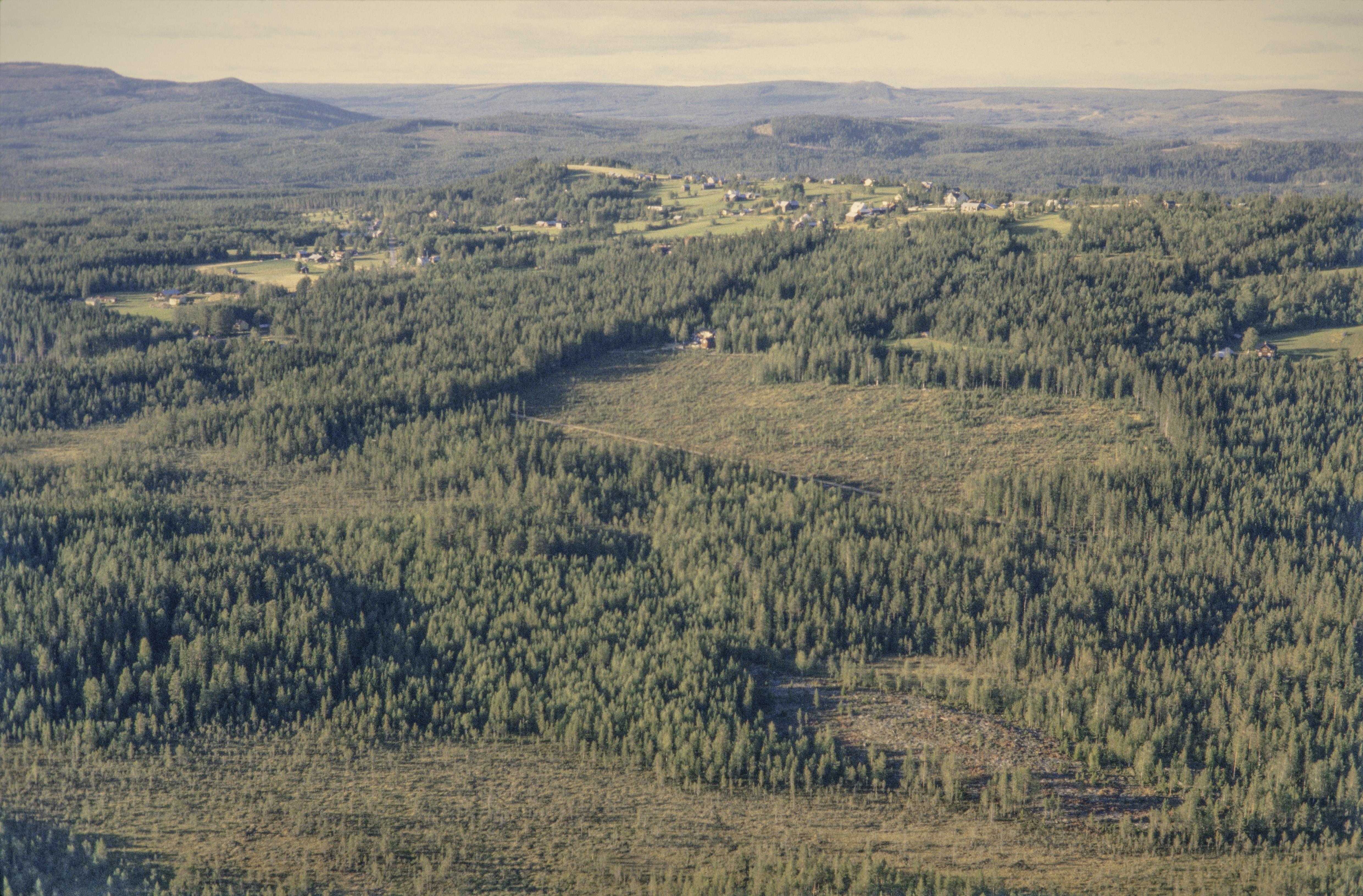 Beskrivning: I bildens övre del Ytterberg by och berg. I byn bytomt RAÄnr Sveg 1400, 1406, 1415, 1419, m.fl. Bilden är tagen mot (väderstreck): N