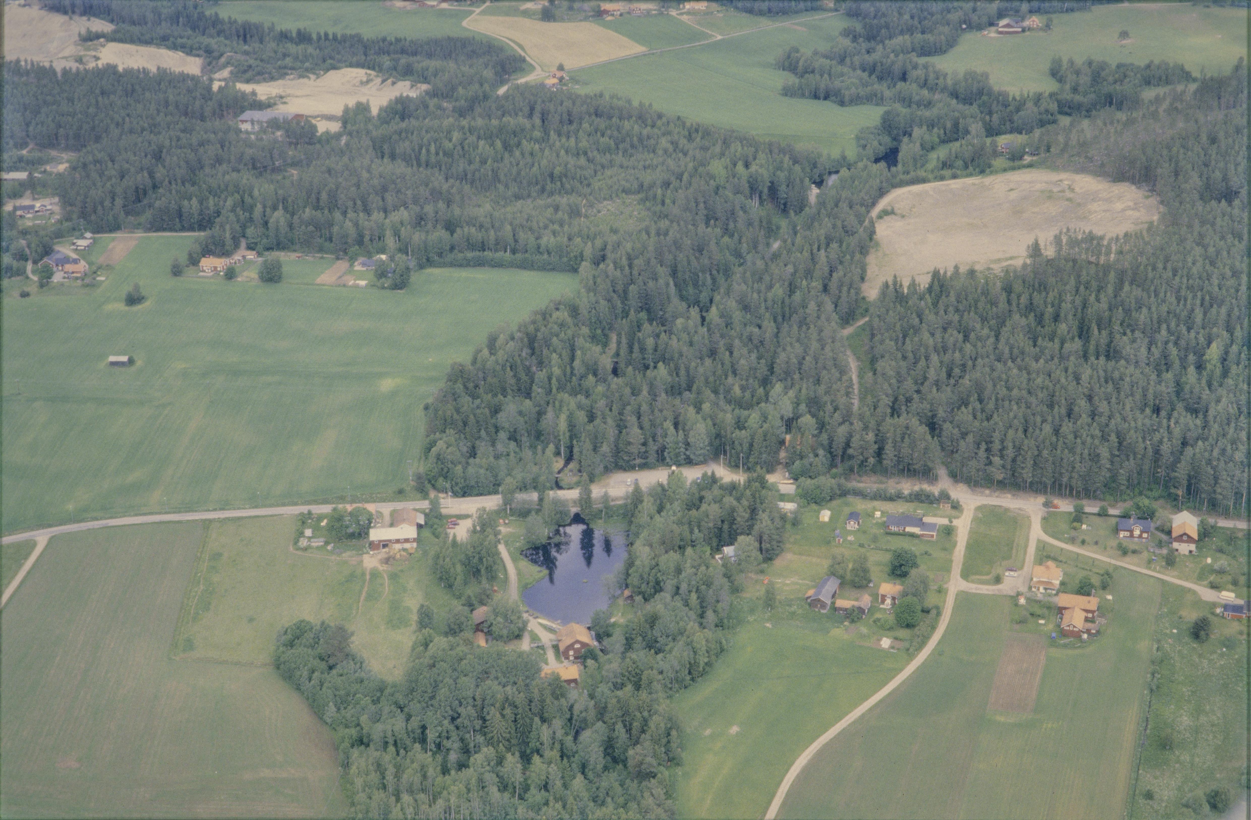 Beskrivning: Växbo by, östra delen vid Växbo kvarn och Sörom. Över bildens mitt Trolldalen RAÄnr Bollnäs 417:1 i Vaxboåns dalgång. Vid bildens mitt bro RAÄnr Bollnäs 489:1 vid gravfält Bollnäs 33:1. Bilden är tagen mot (väderstreck): N