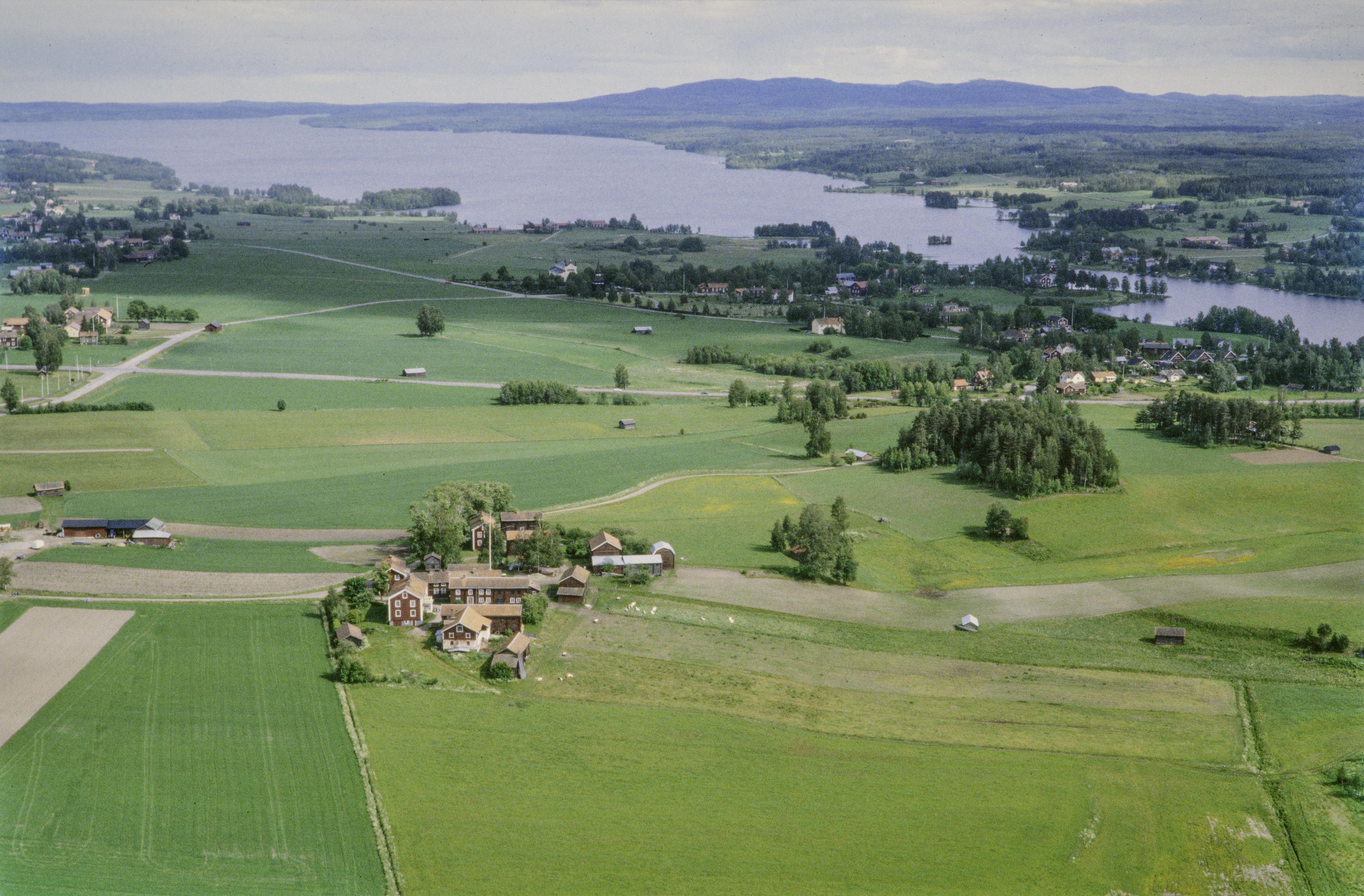 Beskrivning: Västerängs by med fyra hälsingegårdar. Bykärnan har tre gårdar: Ol-Ers, Erst-Mickels och Schäffners och norr om bykärnan Bommens (ej i bilden). Byn blev kulturreservat i 2002. Avasjön i bildens övre del. Bilden är tagen mot (väderstreck): OSO