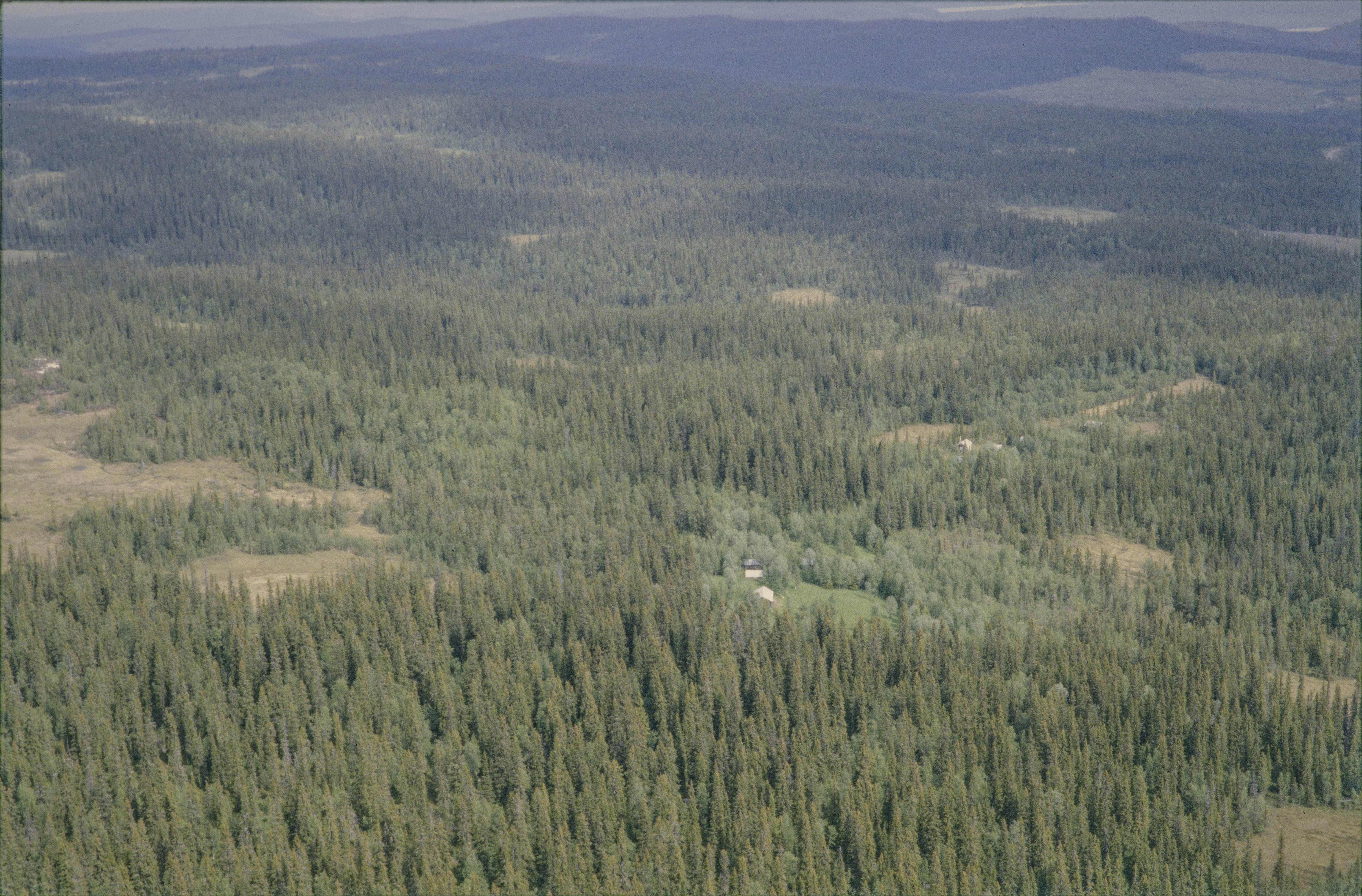 Beskrivning: Fjällområdet Slötjärnknulen på östsidan av Höktjärnen, nordväst i socknet Föllinge. Till höger om bildens mitt fäbodområdet Svedbodarna. Bilden är tagen mot (väderstreck): N