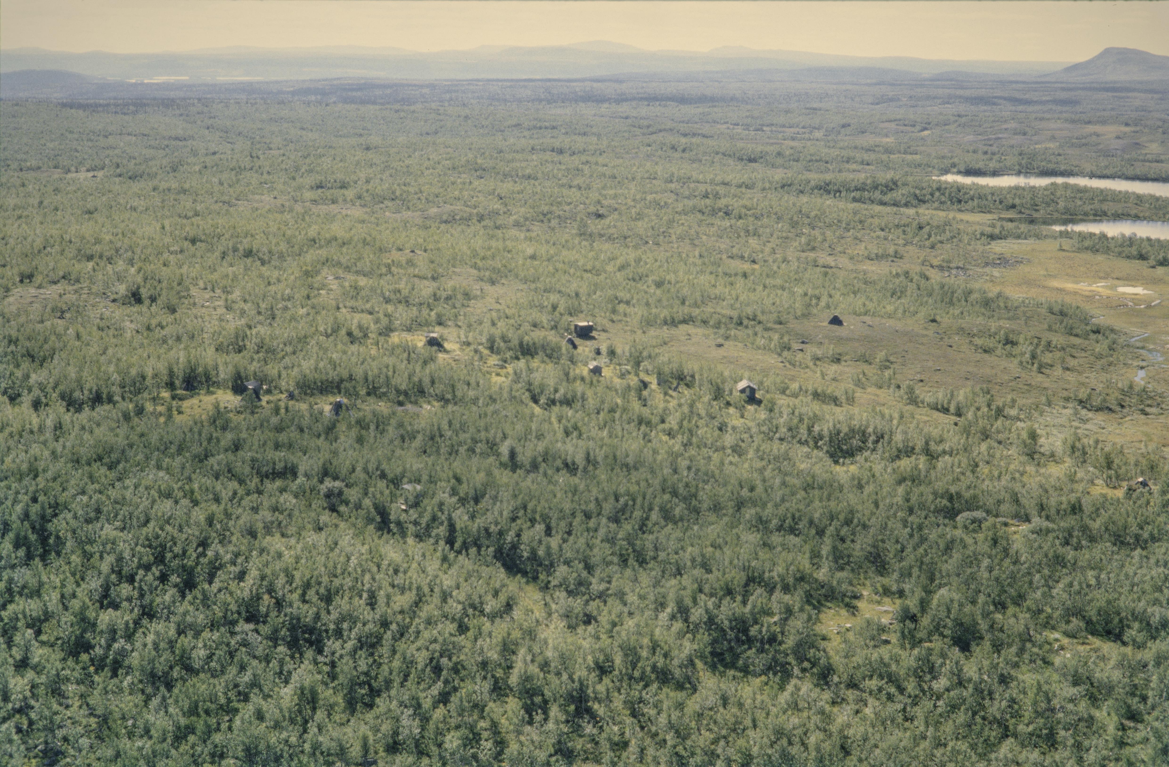 Beskrivning: Området Kroktjärnvallen / Bahrtja (Bartjan), ett samisk kulturmiljö och viste öster om sjön Kroktjärnen. Sameviste RAÄnr Oviken 265:1, rengärde Oviken 257:1, m.m. Uppe till höger sjön Kroktjärnen. Bilden är tagen mot (väderstreck): SSV