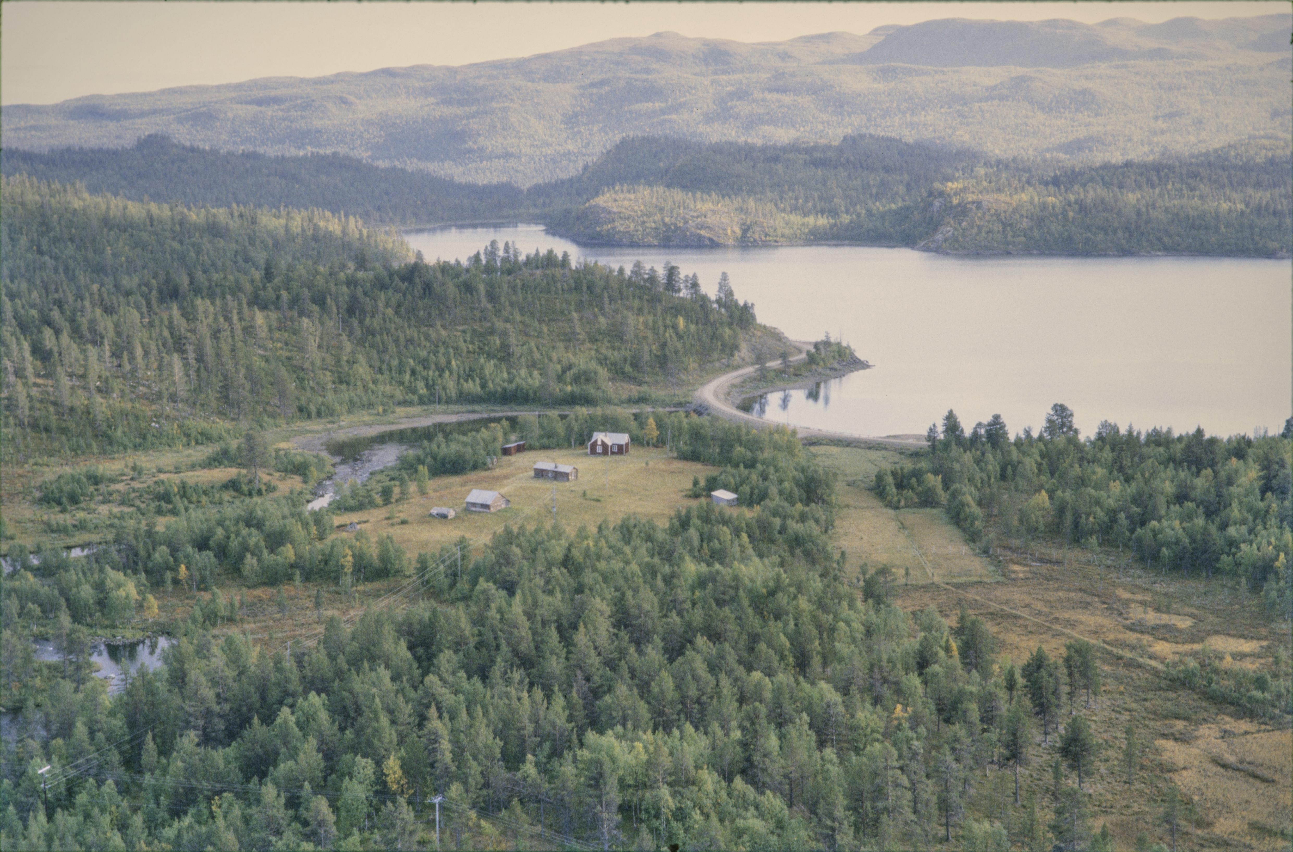 Beskrivning: Området Viejenäs i östra ändan av Gautosjön (Gávttojávrre / Gautojaure) och dalgången Laisälven (Lájsso). Vid bildens mitt boplatser RAÄnr Arjeplog 559:1 och 560:1. Till vänster ån Viejeströmmen och fångstgrop RAÄnr Arjeplog 964:1. Märkberget och Laisälvens utlopp till väsnter över bildens mitt. Bilden är tagen mot (väderstreck): SO