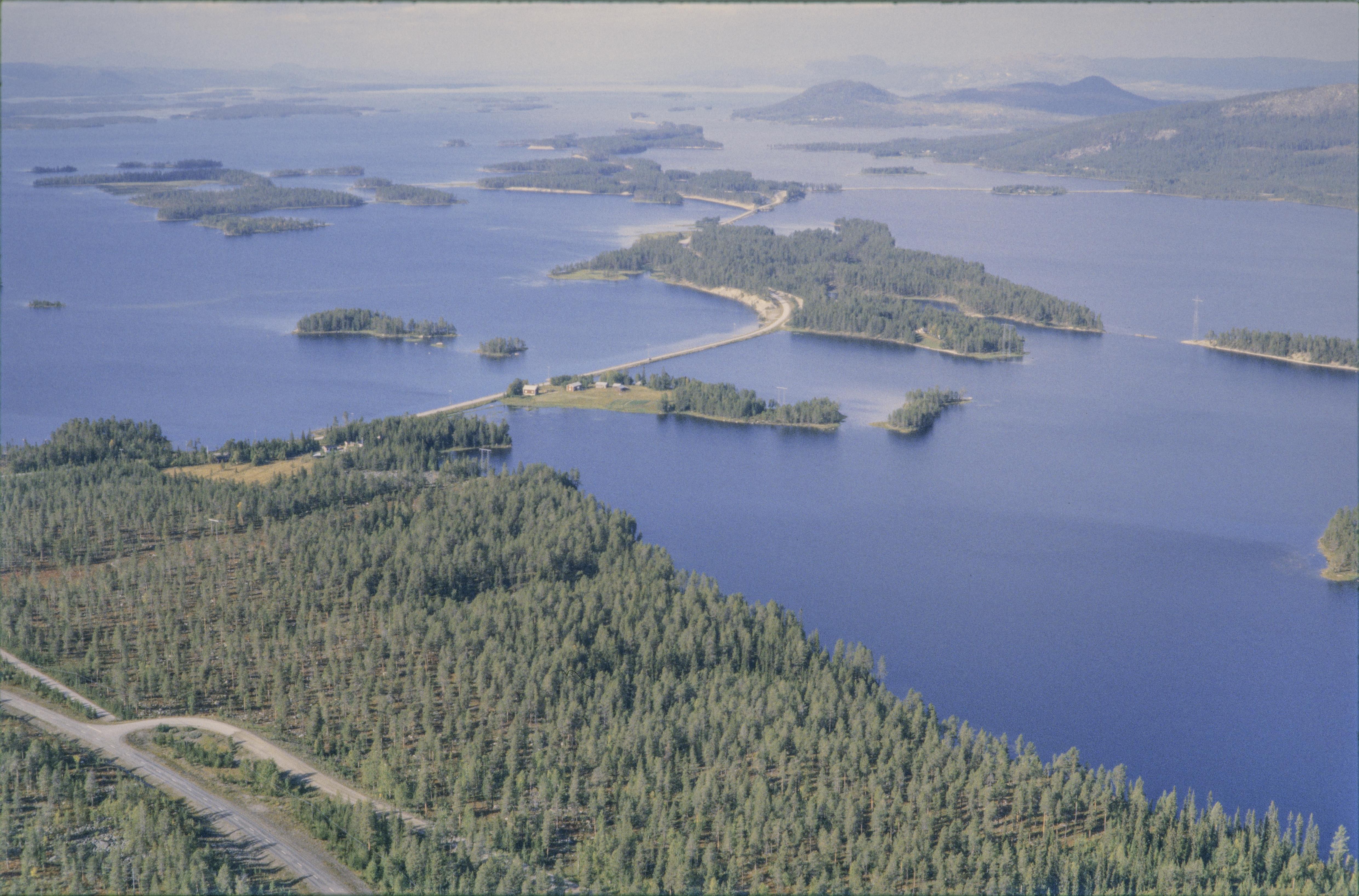 Beskrivning: Fornlämningsområdet Fårholmen, Gallesgutj och Nåtti i och mellan sjöarna Hornavan (Tjårvek) och Kakel (Gáhkal). Område med sandåsar som bildar en arkipelag av öar, uddar och holmar med fångstgropar, kokgropar, boplatser m.m. Över bildens mitt vägen vid Fårholmen och vidare upp längs Rappasundet. Boplatser RAÄnr Arjeplog 521:1, 525:1, 527:1, m.fl. Bilden är tagen mot (väderstreck): NV