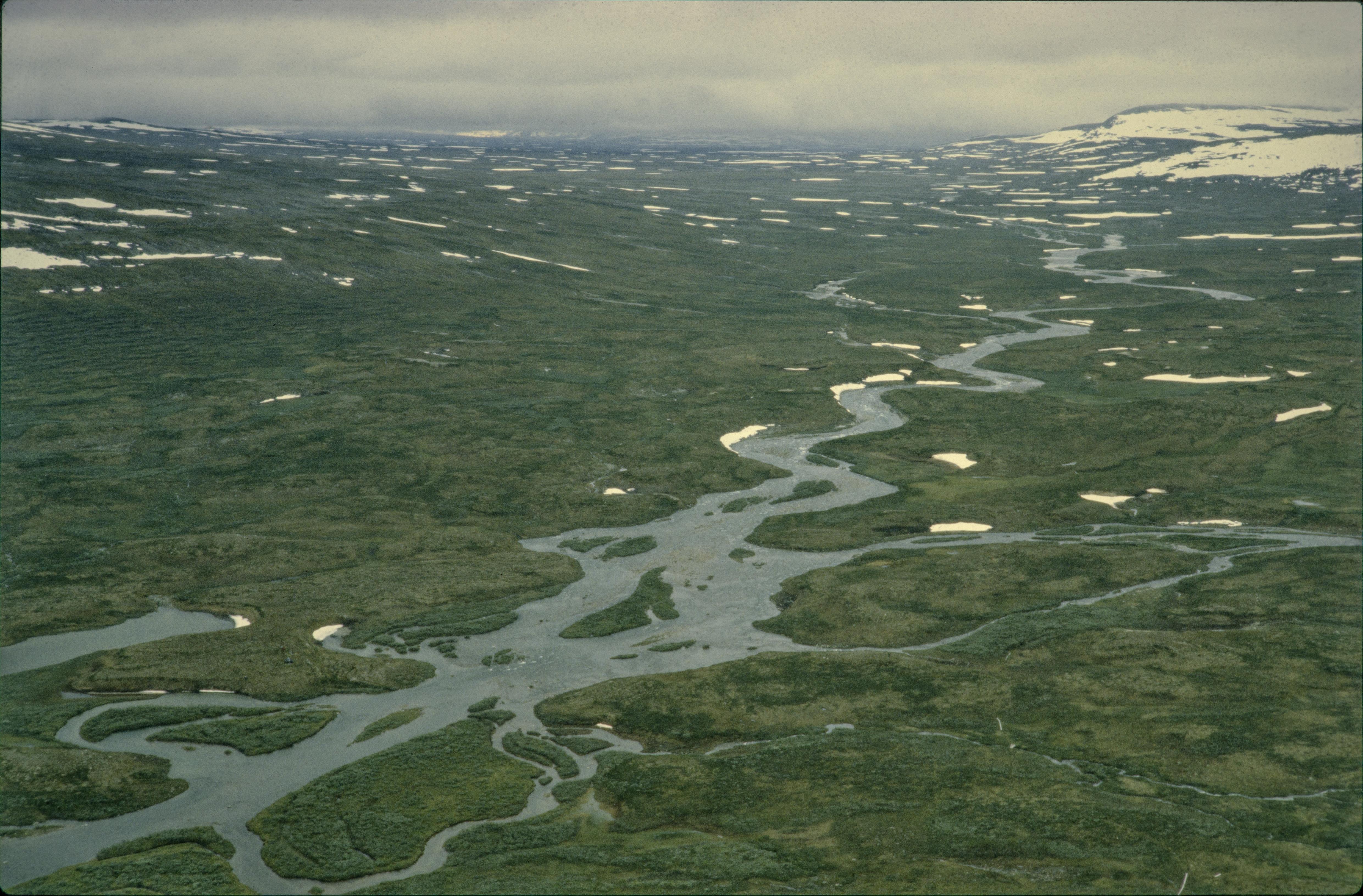 Beskrivning: Färdvägen Nasaleden i området Smuolevágge, halvvägs mellan området Ruonekgårttje vid sjön Sädvajaure (Sädvvájávrre) och Nasafjäll (Nása). Till höger om bildens mitt rinner ån Vávlávágge in i ån Smuolejåkkå (Smuolejåhkå). Över bildens mitt en bro där färdvägen böjer av vidare mot Nasafjäll uppe till vänster. Bilden är tagen mot (väderstreck): SV