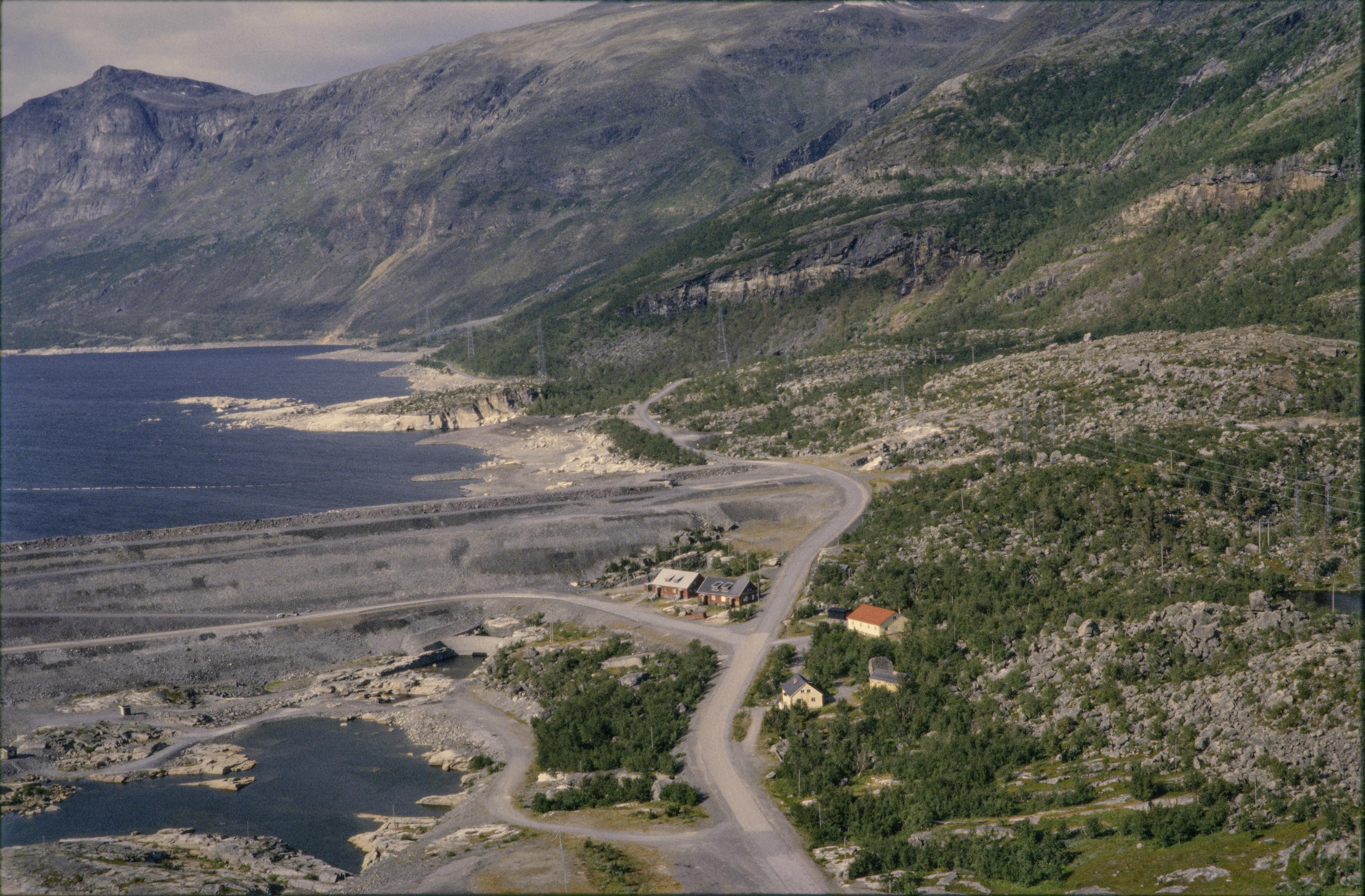 Beskrivning: Det gamla kraftverksområdet Suorva (Suorvvá) vid Suorvadammen nordväst om Stora Sjöfallet (Stuor Muorkke) i Stora Luleälven (Stuor Julevädno). Området ingår i Stora Sjöfallets nationalpark (Stuor Muorkke) och världsarvet Laponia. Bilden är tagen mot (väderstreck): VNV