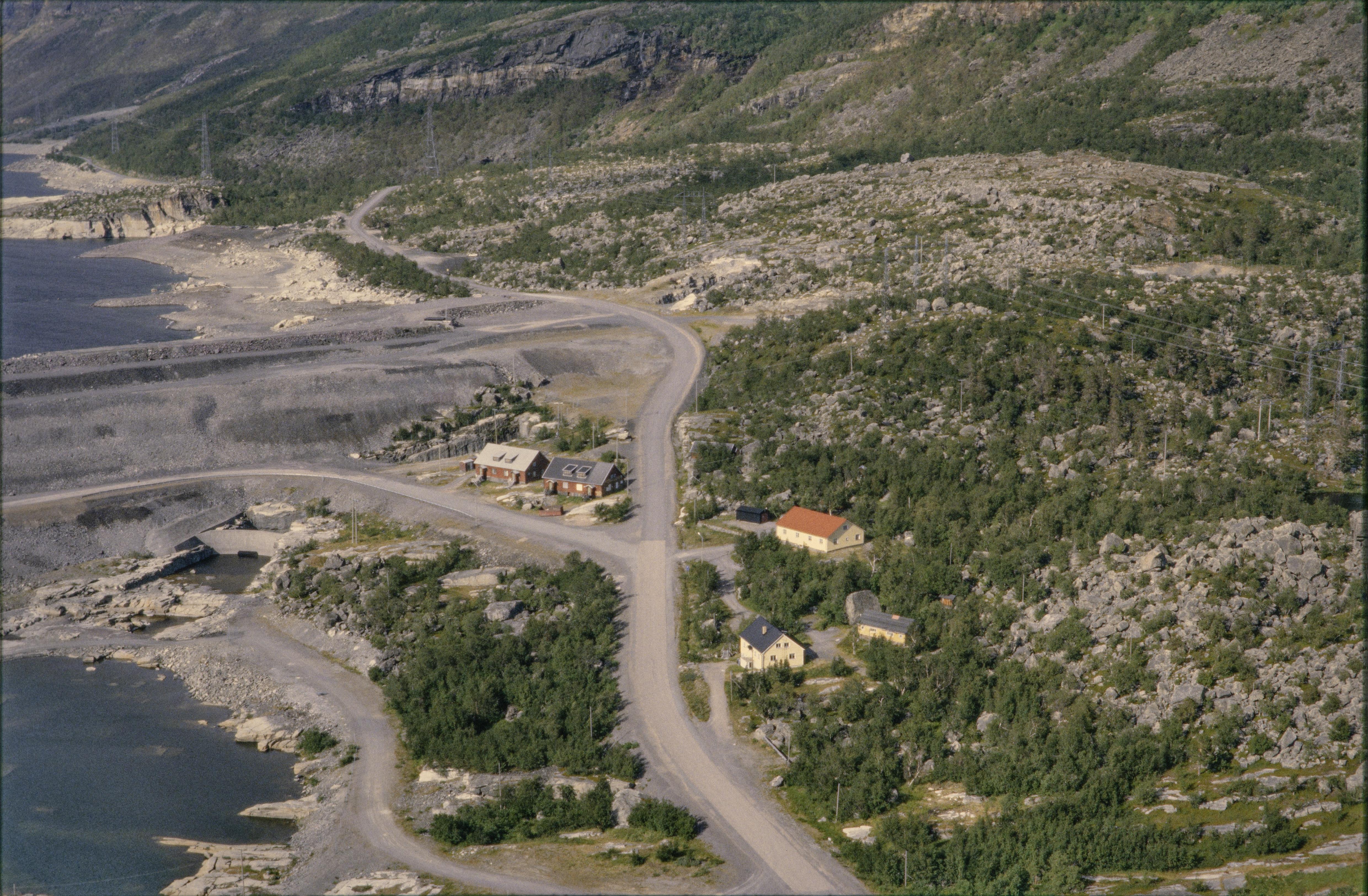 Beskrivning: Det gamla kraftverksområdet Suorva (Suorvvá) vid Suorvadammen nordväst om Stora Sjöfallet (Stuor Muorkke) i Stora Luleälven (Stuor Julevädno). Området ingår i Stora Sjöfallets nationalpark (Stuor Muorkke) och världsarvet Laponia. Bilden är tagen mot (väderstreck): NV
