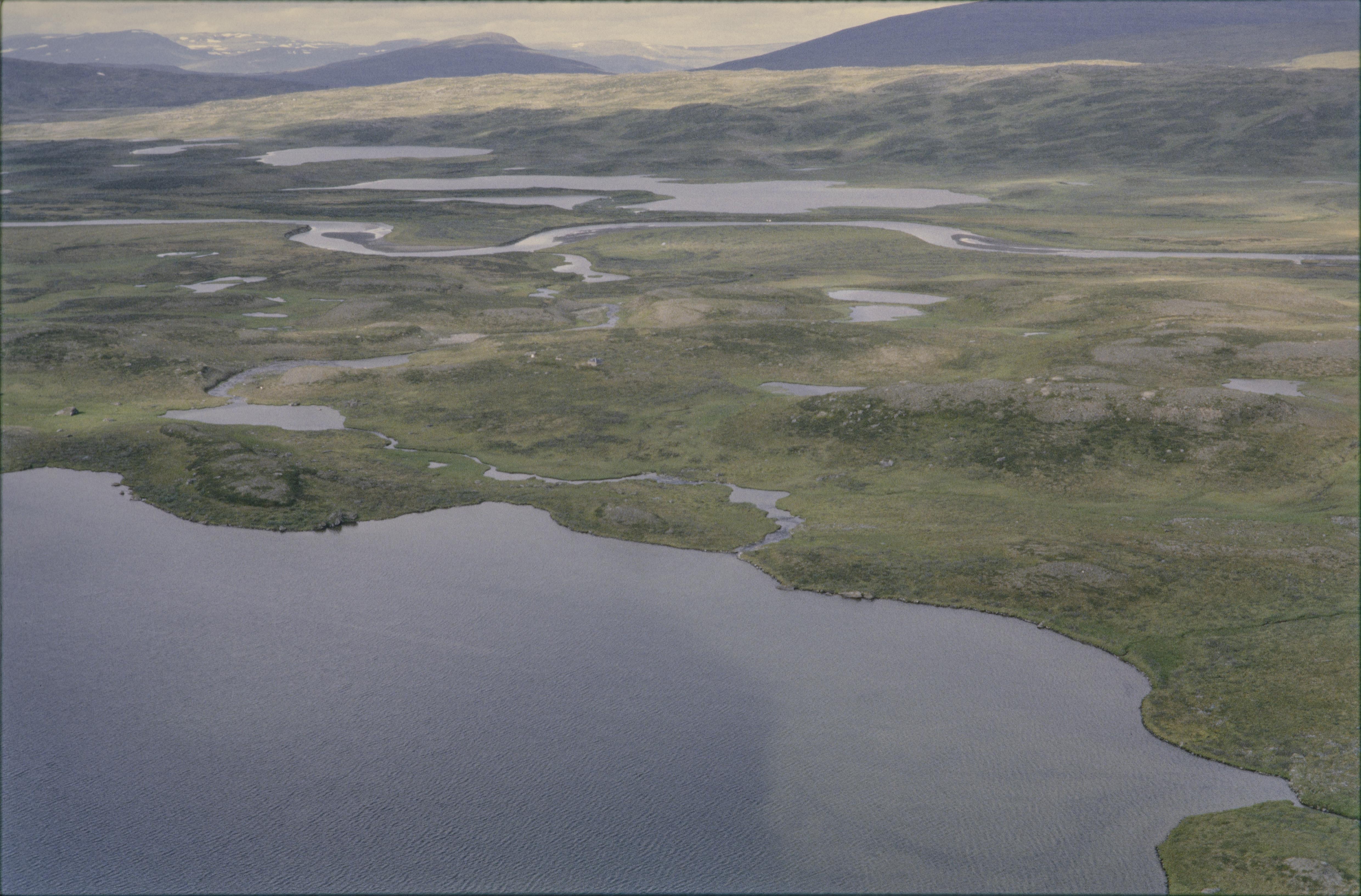 Beskrivning: Parajaure (Bårajávrre) sjö, sydväst om fjällområdet Låutak (Låvdak). Vid stranden under bildens mitt härd RAÄnr Jokkmokk 550:1, 609:1. kåta Jokkmokk 610:1, m.fl. En renvaktarstuga vid ån Låvdajåhkå i bildens mitt. Området ingår i Padjelanta (Badjelánnda) nationalpark och världsarvet Laponia. Bilden är tagen mot (väderstreck): N