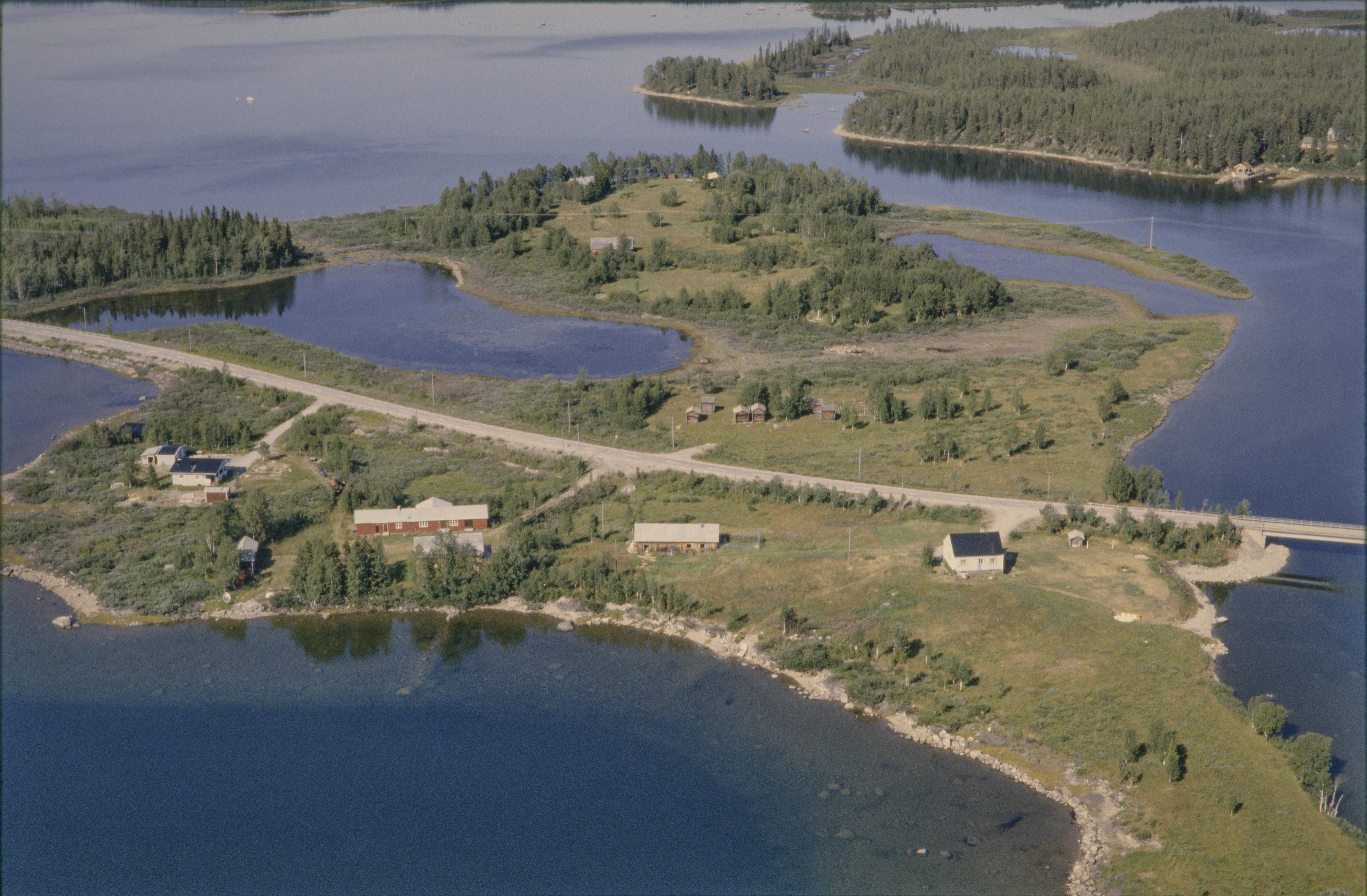 Beskrivning: Byn Tjåmotis (Tjoammbe) vid utloppet till Blackälven (Smadjeädno) mellan sjöarna Tjåmodisjaure (Tjåmodisjávrre) och Skalka (Skálkká). På udden över bildens mitt offerplats RAÄnr Jokkmokk 35:1. Bilden är tagen mot (väderstreck): NNV