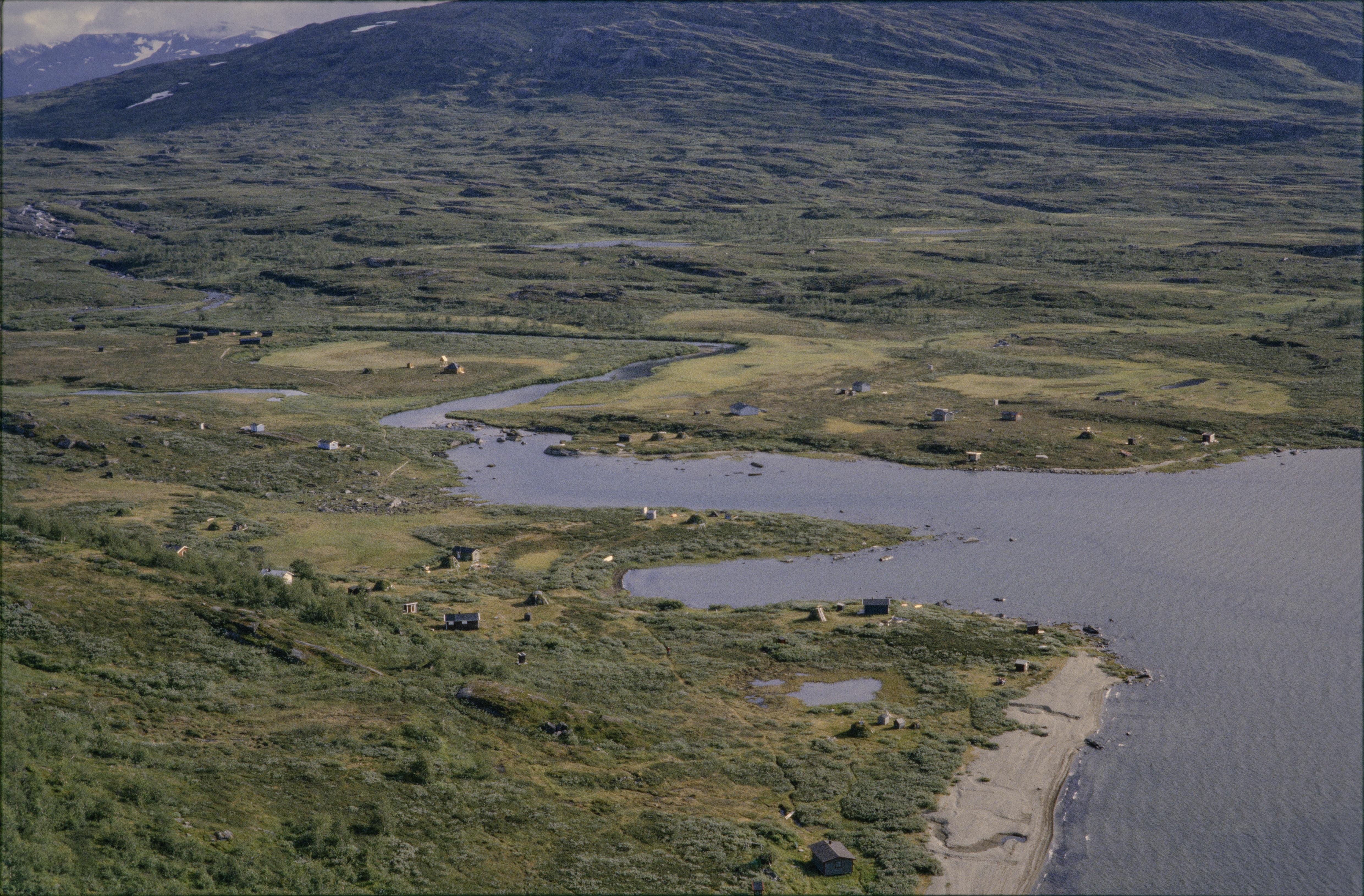 Beskrivning: Arasluokta (Árasluokta) sameviste i östra delen av sjön Virihaure (Virihávrre). I vistet Arasluokta kapell och en härd RAÄnr Jokkmokk 3378:1, m.m. Området ingår i Padjelanta (Badjelánnda) nationalpark och världsarvet Laponia. Bilden är tagen mot (väderstreck): S