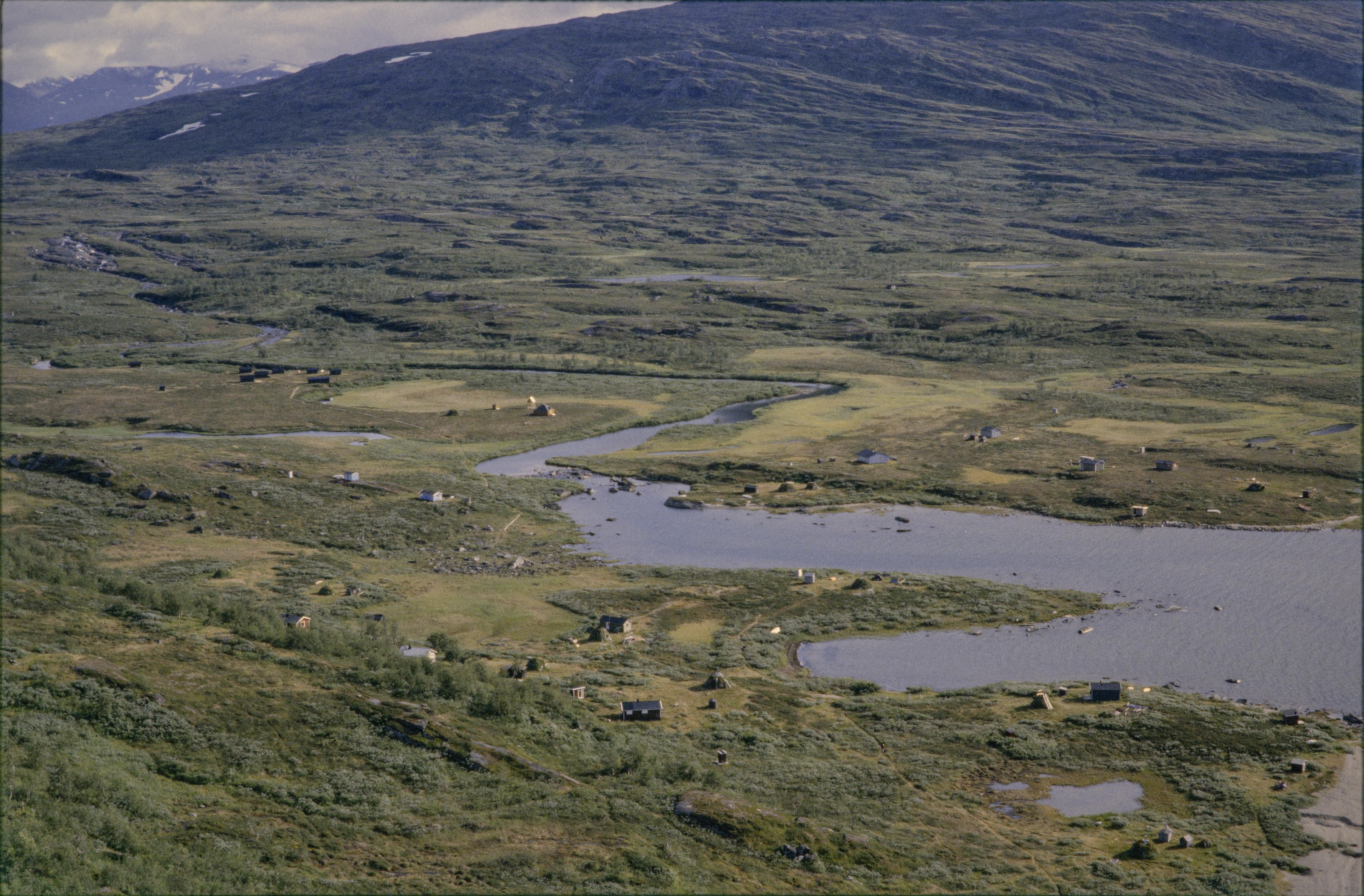 Beskrivning: Arasluokta (Árasluokta) sameviste i östra delen av sjön Virihaure (Virihávrre). I vistet Arasluokta kapell och en härd RAÄnr Jokkmokk 3378:1, m.m. Området ingår i Padjelanta (Badjelánnda) nationalpark och världsarvet Laponia. Bilden är tagen mot (väderstreck): S