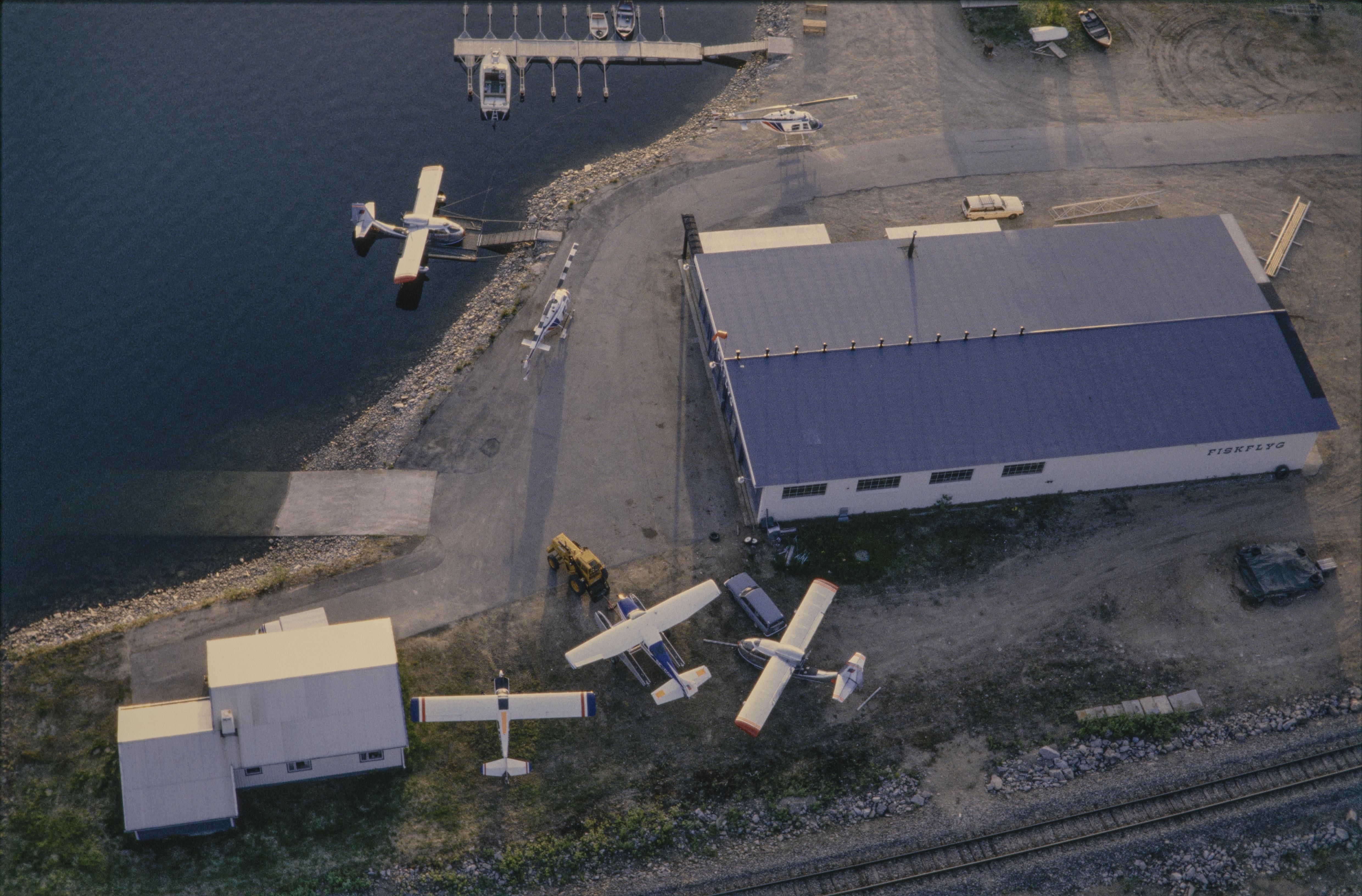 Beskrivning: Porjus flyghamn i Porjus (Bårjås) tätort och kraftverkssamhälle vid sjön Stora Lulevatten (Stuor Julevu) och Stora Luleälven (Stuor Julevädno). Bilden är tagen mot (väderstreck): NNV