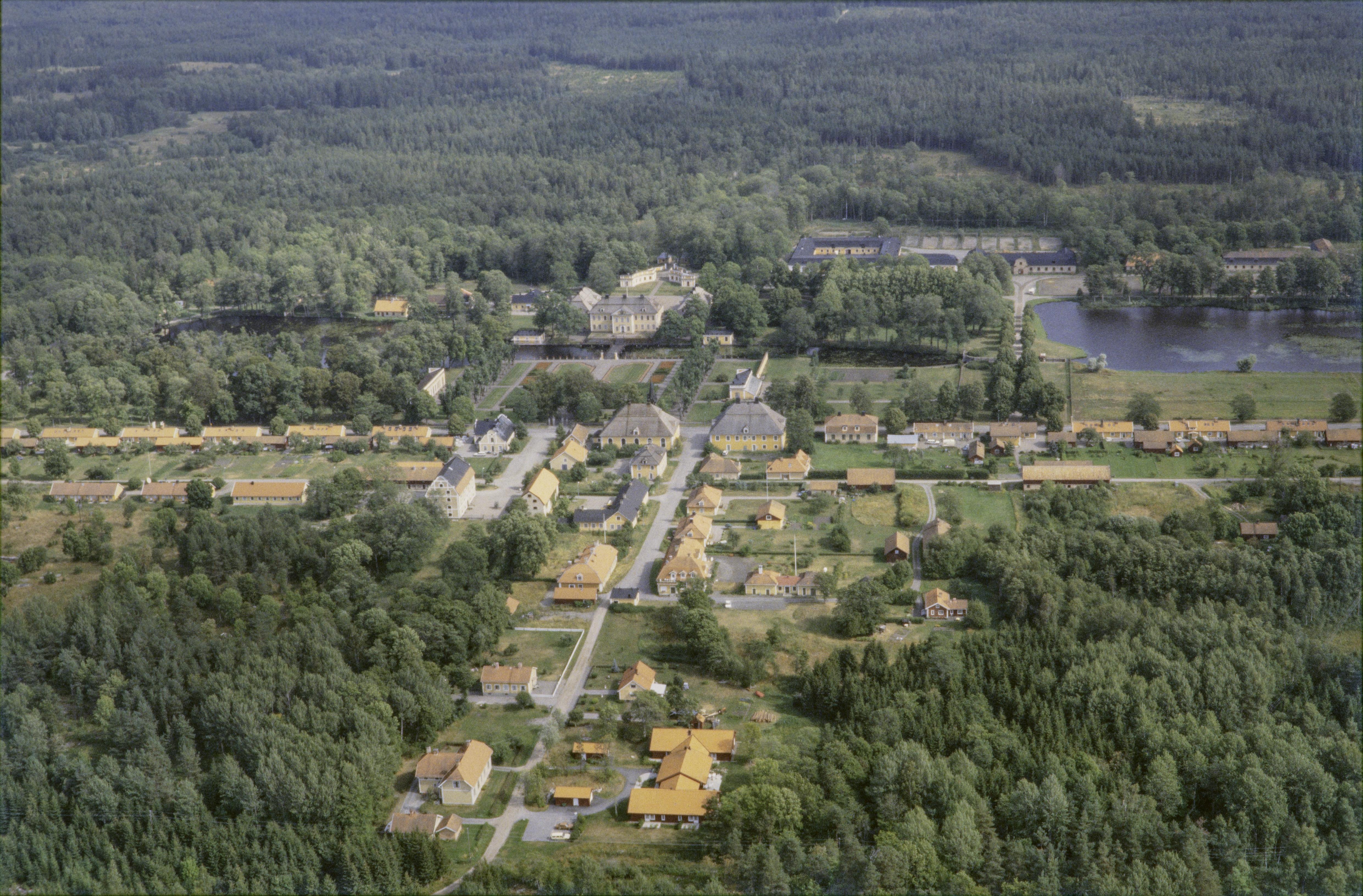 Beskrivning: Lövstabruk (byggnadsminne; skrivs även Lövsta bruk / Leufsta bruk) vid Upplandsleden. Lövstabruks kyrka och herrgård med engelsk park RAÄnr Österlövsta 252-254 vid Bruksdammen. Bilden är tagen mot (väderstreck): Ö