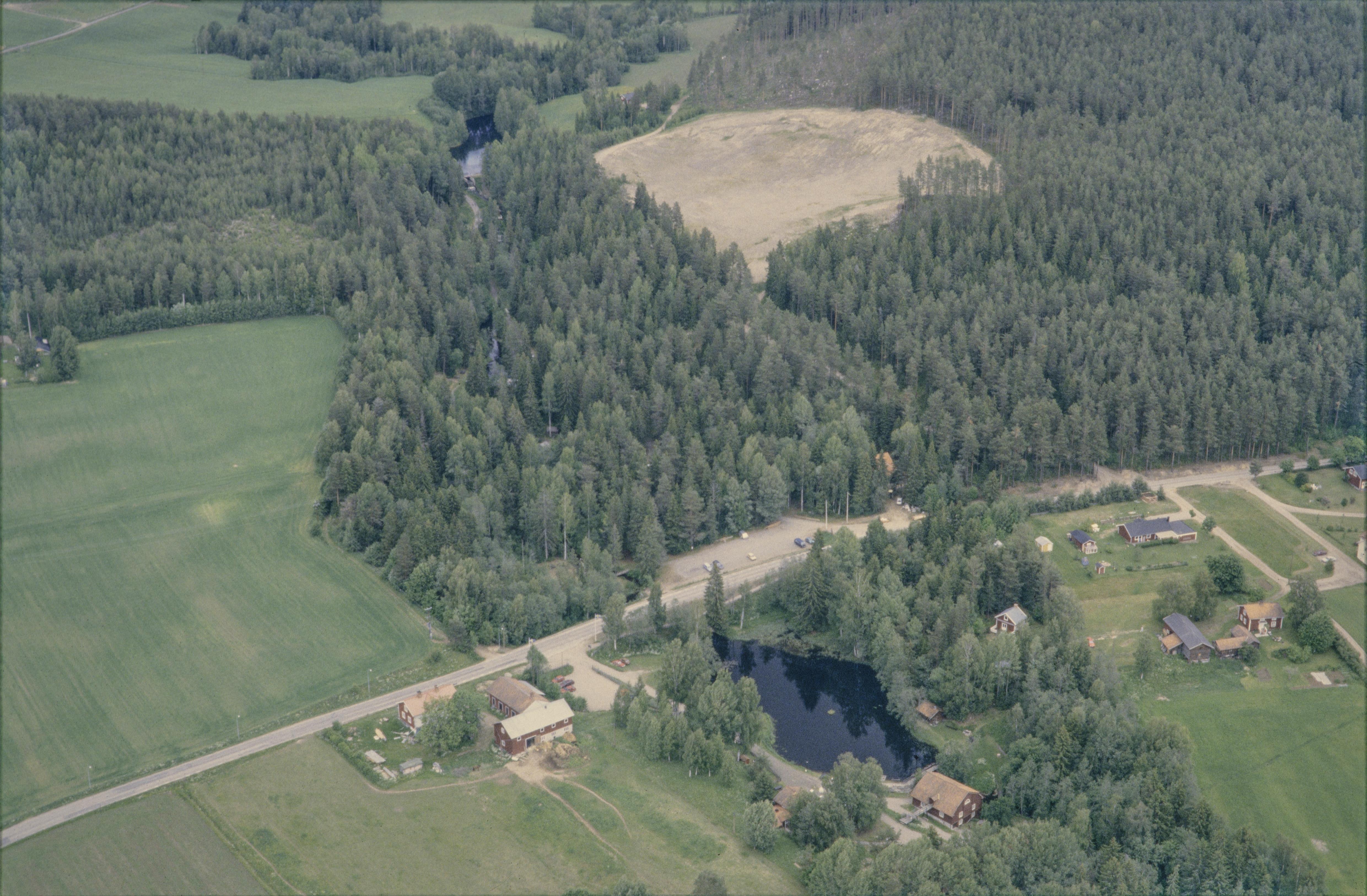 Beskrivning: Växbo by, östra delen vid Växbo kvarn och Sörom. Över bildens mitt Trolldalen RAÄnr Bollnäs 417:1 i Vaxboåns dalgång. Under bildens mitt bro RAÄnr Bollnäs 489:1 vid gravfält Bollnäs 33:1. Bilden är tagen mot (väderstreck): NNO