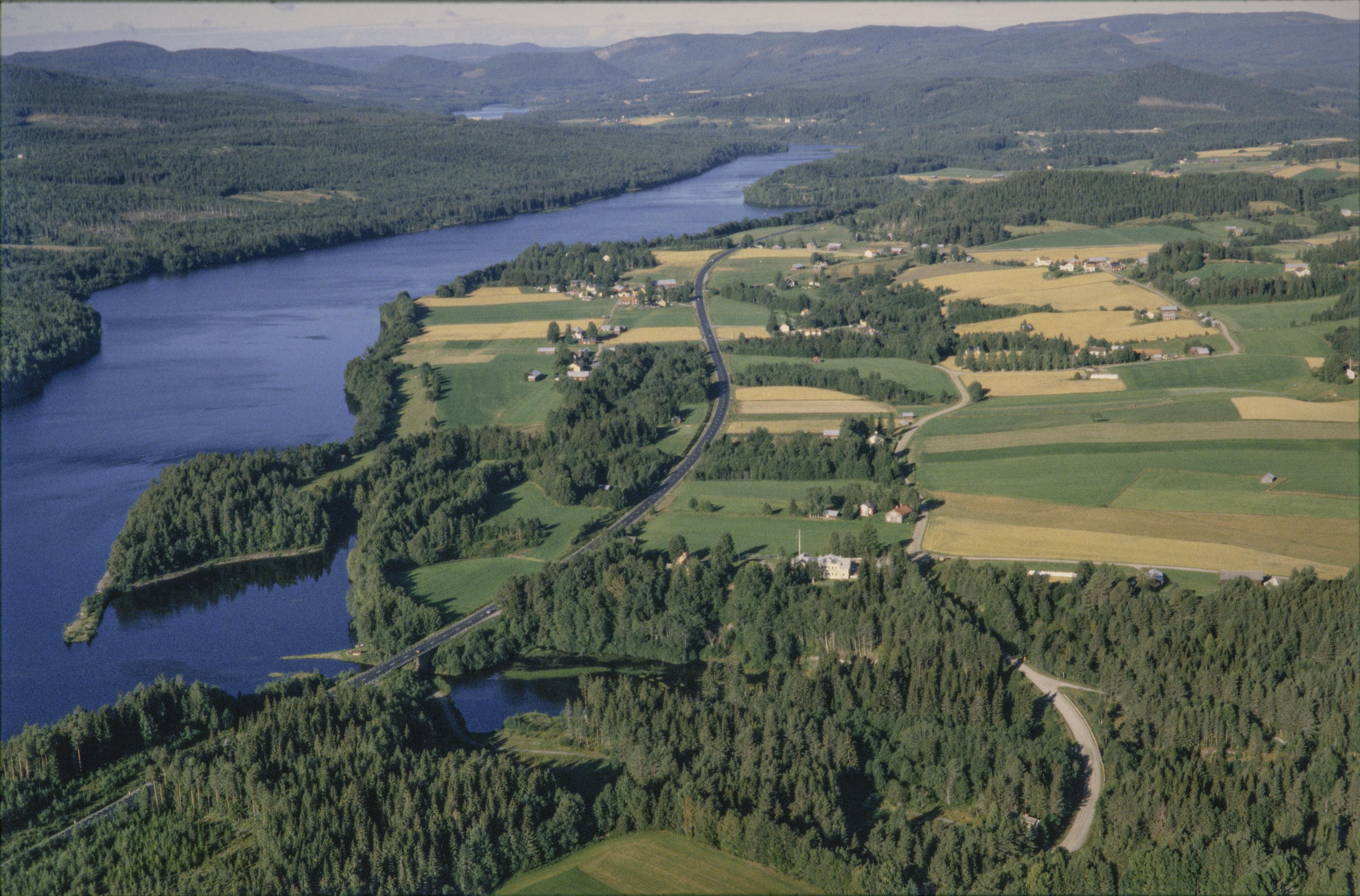Beskrivning: Indalsälvens dalgång. I bildens nedre del området Svedjan vid ån Gillerans utlopp i älven. Krokvågs gamla tomt RAÄnr Ragunda 321:1 till höger om bildens mitt. Uppe till höger byn Ammer vid Ammeråns utlopp. Bilden är tagen mot (väderstreck): VSV