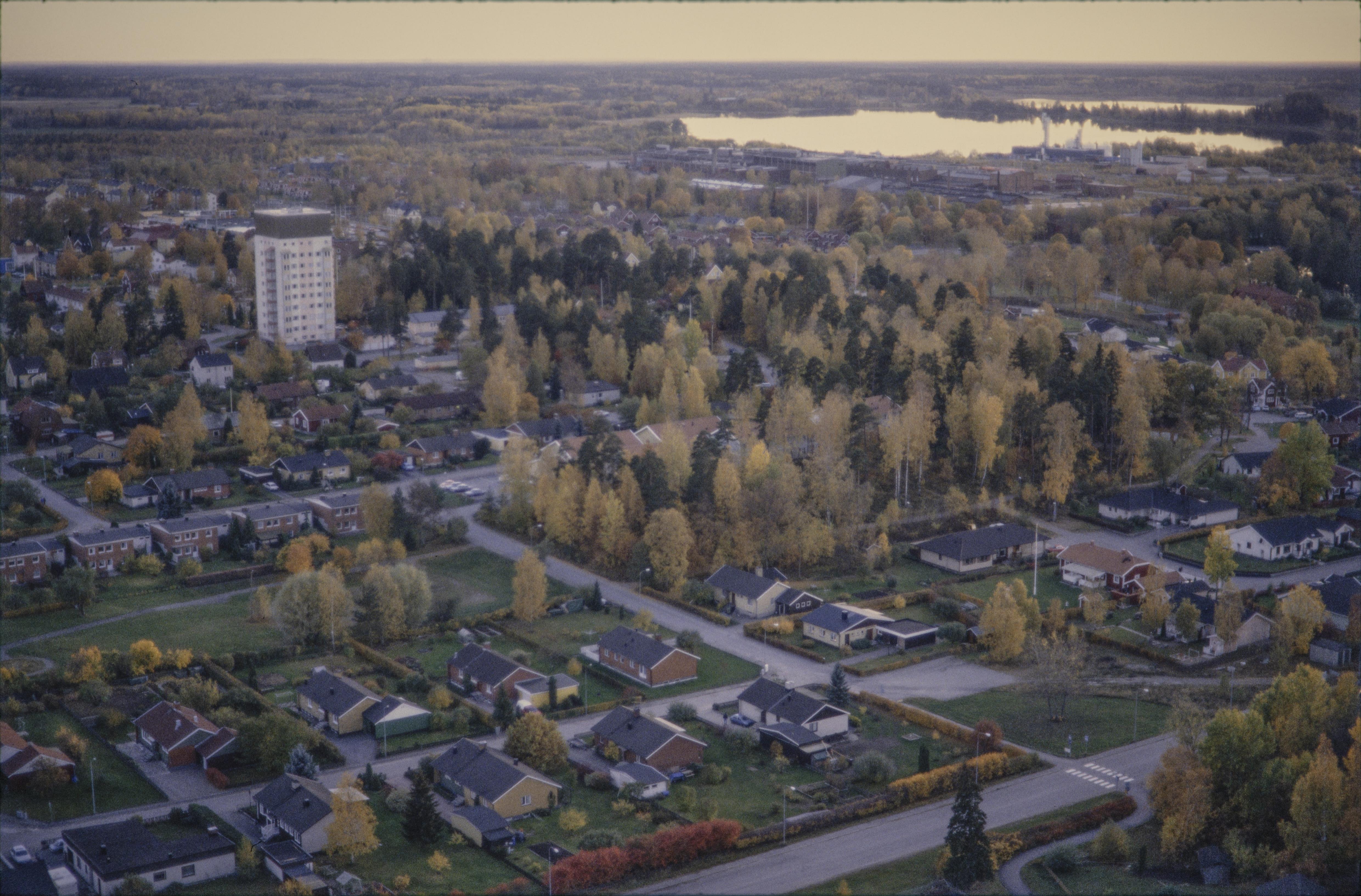 Beskrivning: Surahammars tätort och bruk RAÄnr Sura 49:1. Den höga byggnaden uppe till vänster står vid Skogsvägen och Bergsgatan. I bildens övre del Östersjön och byggnadsminnet Strömsholms kanal. Bilden är tagen mot (väderstreck): SSV