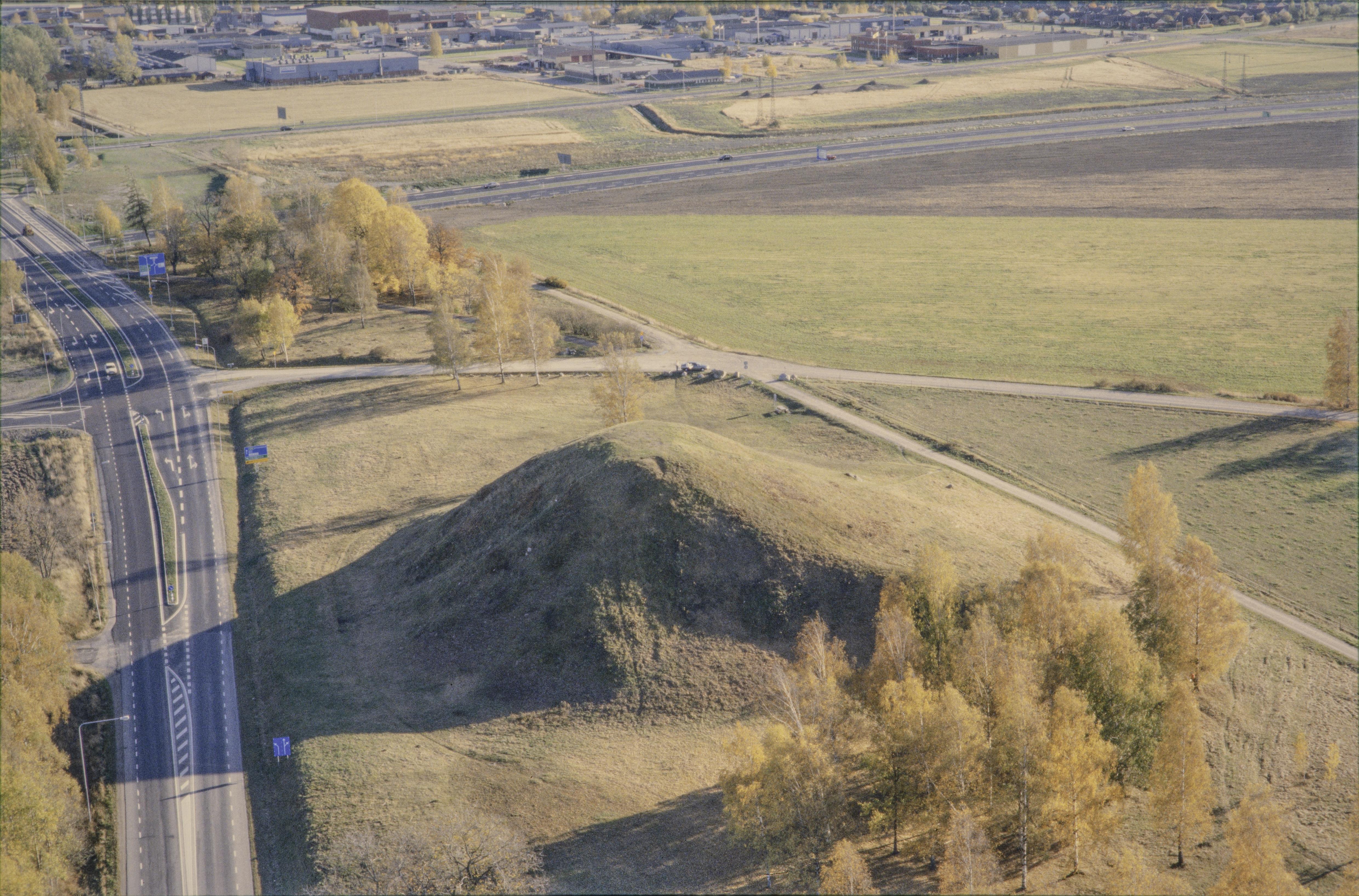 Beskrivning: Gravhögen Ströbohög RAÄnr Köping 56:1 i nordvästra utkanten av staden Köping. Bilden är tagen mot (väderstreck): SSO