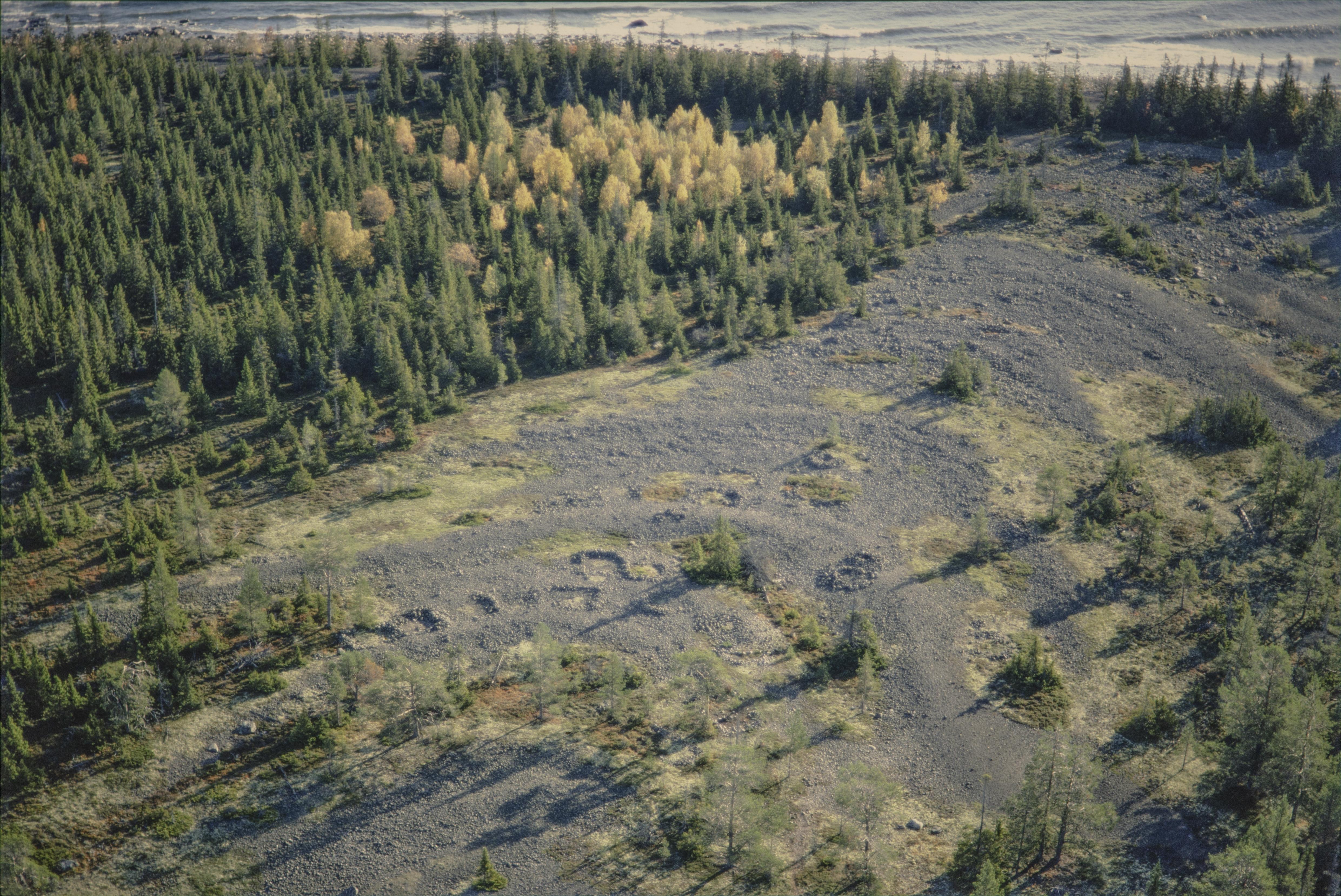 Beskrivning: Området Grundskatan och Grundskataräften i sydöstra delen av udden Bjuröklubb. Ett fornlämningsområde med fiskeläge, gravfält och labyrint RAÄnr Lövånger 78:1-2. Bilden är tagen mot (väderstreck): ONO