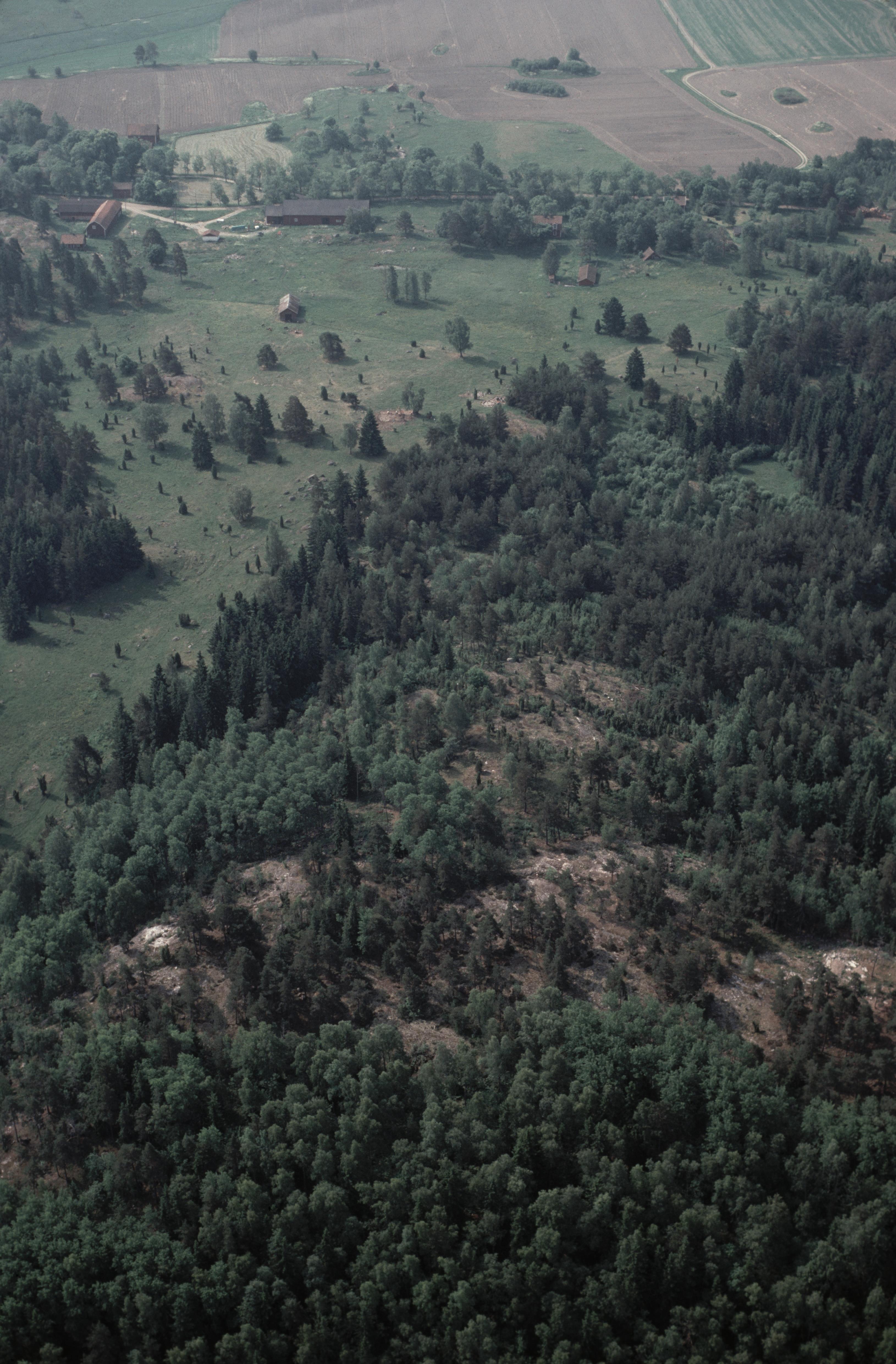 Beskrivning: Området Fjället i sydvästra delen av Angarnssjöängen, Långhundraleden. I bildens nedre del fornborg RAÄnr Vallentuna 265:1. I bildens övre del Lingsbergs by. Bilden är tagen mot (väderstreck): S