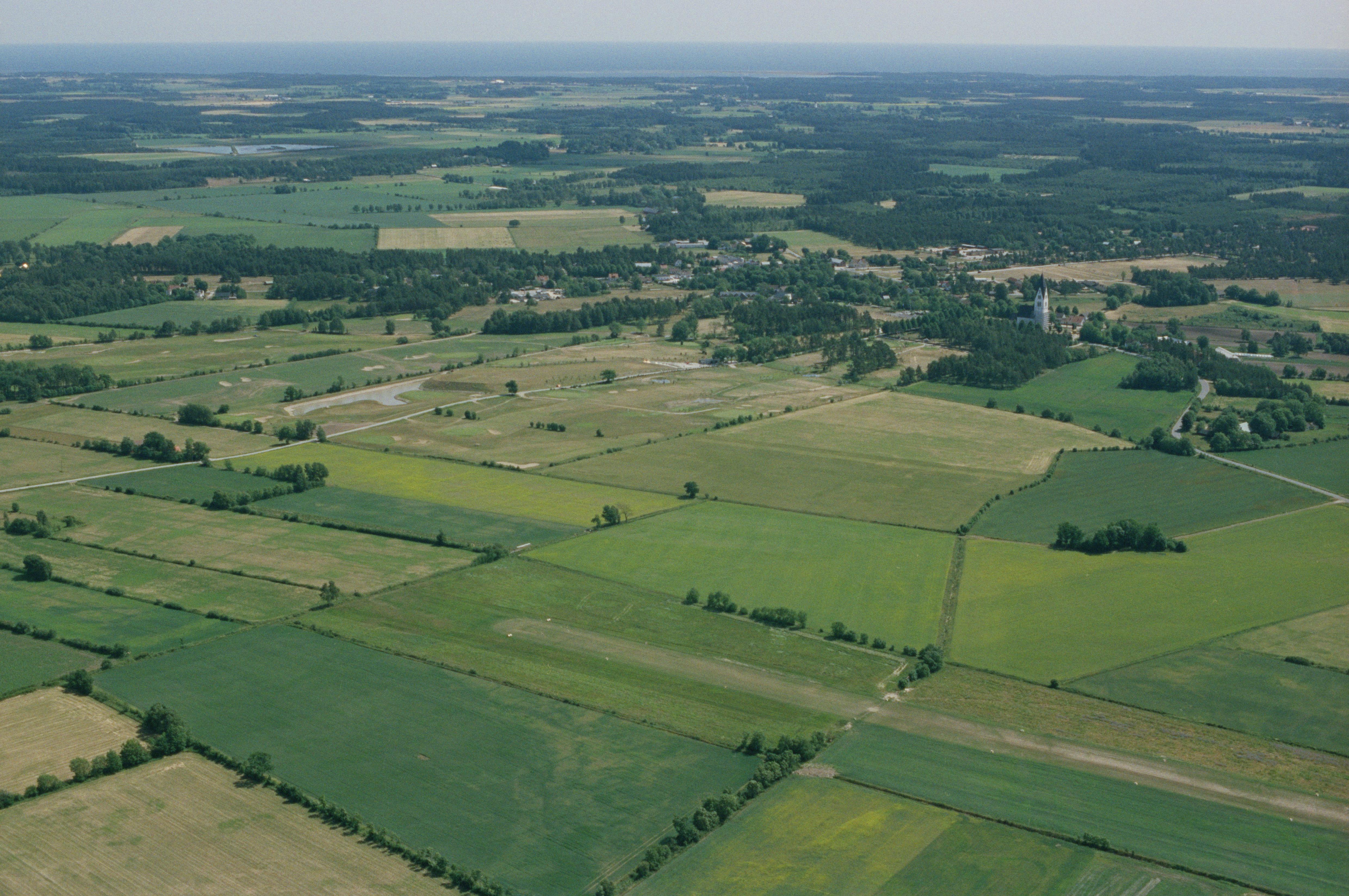 Beskrivning: Stånga kyrkby. Gumbalde golf och hotel vid bildens mitt, Stånga kyrka till höger. I golfbanan boplats RAÄnr Stånga 55:4 m.fl. Bilden är tagen mot (väderstreck): SSO