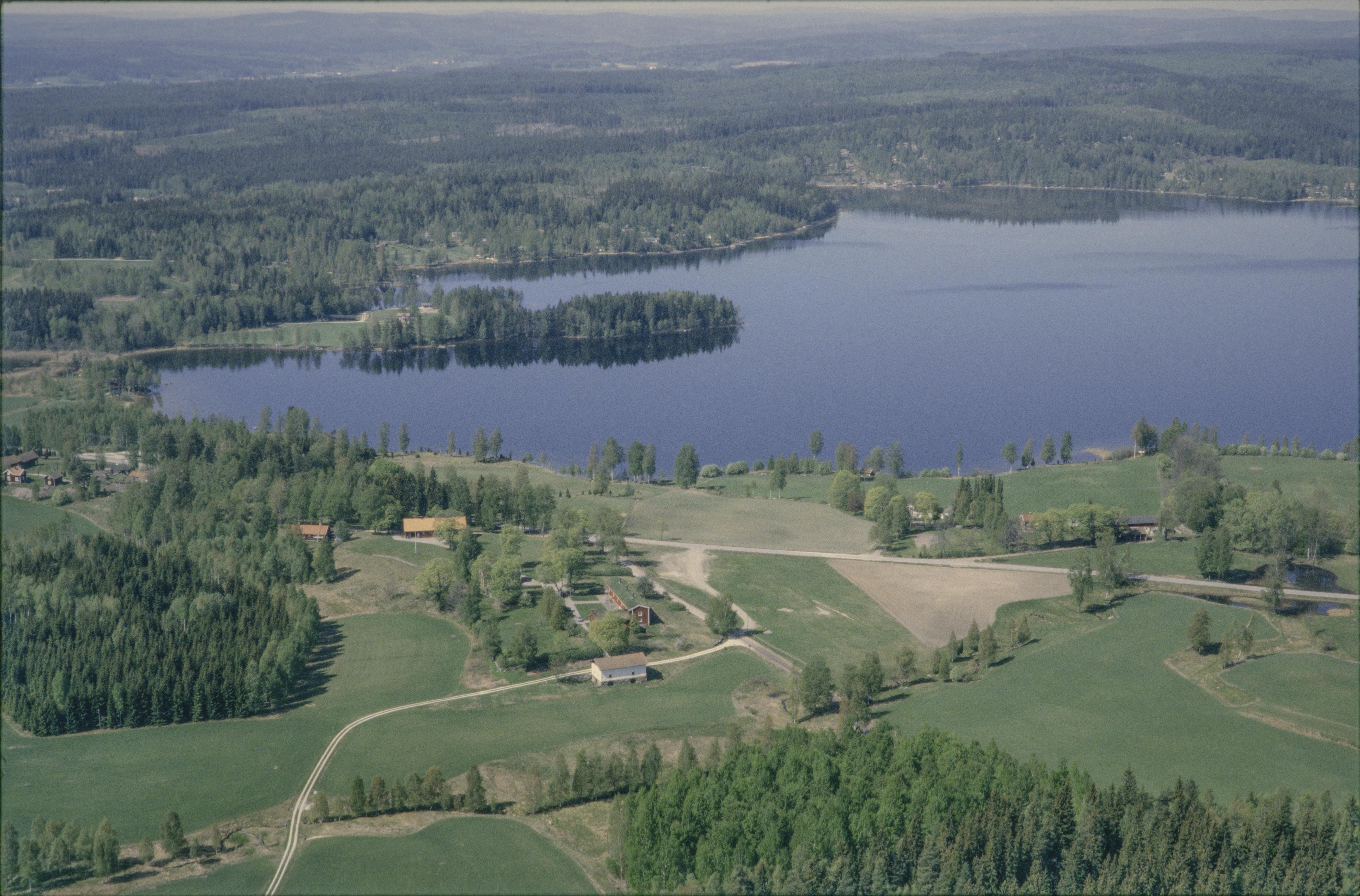 Beskrivning: Siggebohyttans bruk vid sjön Usken. Till vänster om bildens mitt byggnadsminnet Siggebohyttans bergmansgård RAÄnr Linde 24:1. Till höger hyttområde RAÄnr Linde 11:1. Bilden är tagen mot (väderstreck): V