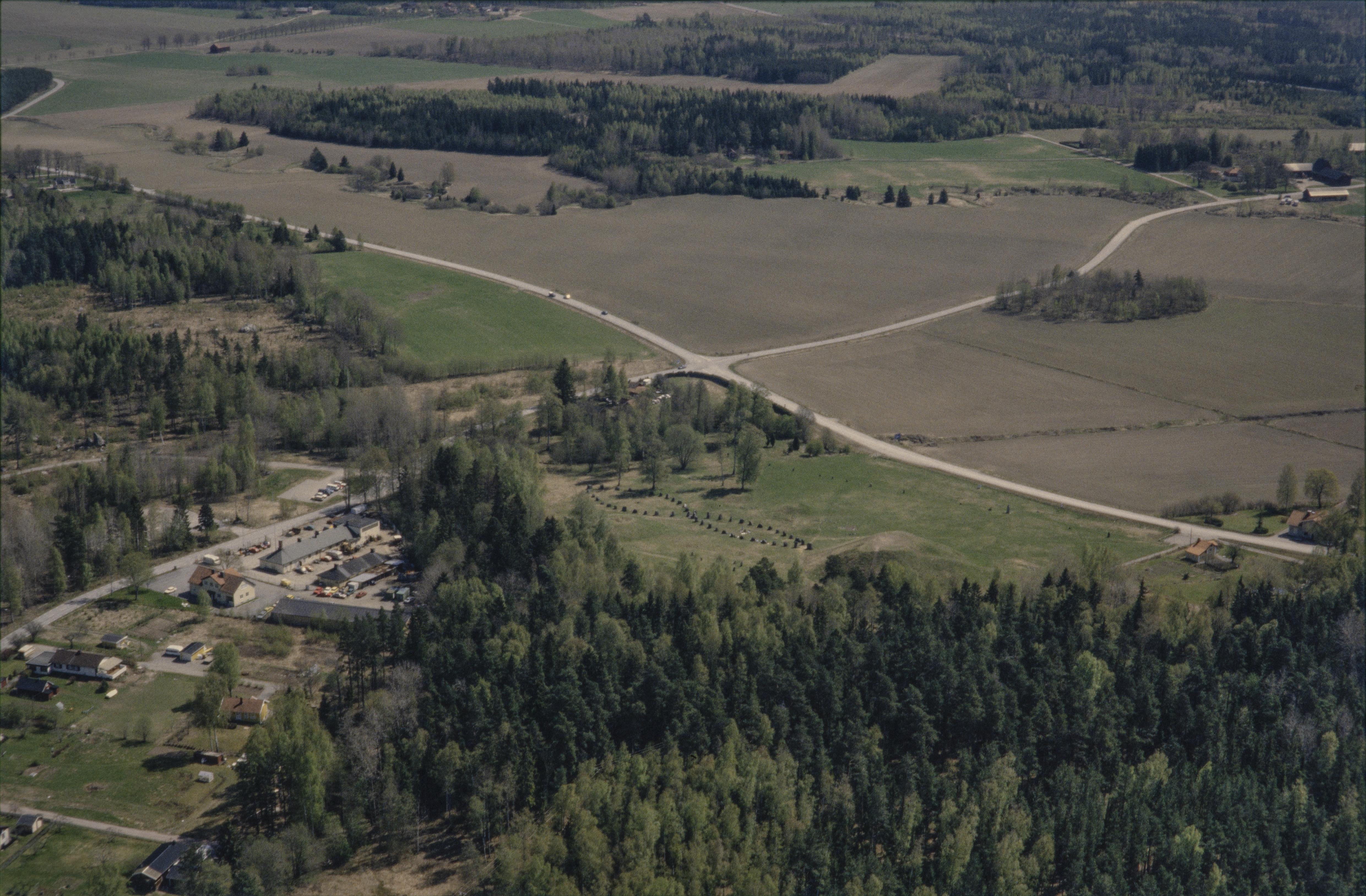 Beskrivning: Fornlämningsområdet Anundshög RAÄnr Västerås 431:1 vid Badelundaåsen i Badelunda. I området finns storhög, skeppssättningar, väglämningar och runsten m.m. Bilden är tagen mot (väderstreck): SO