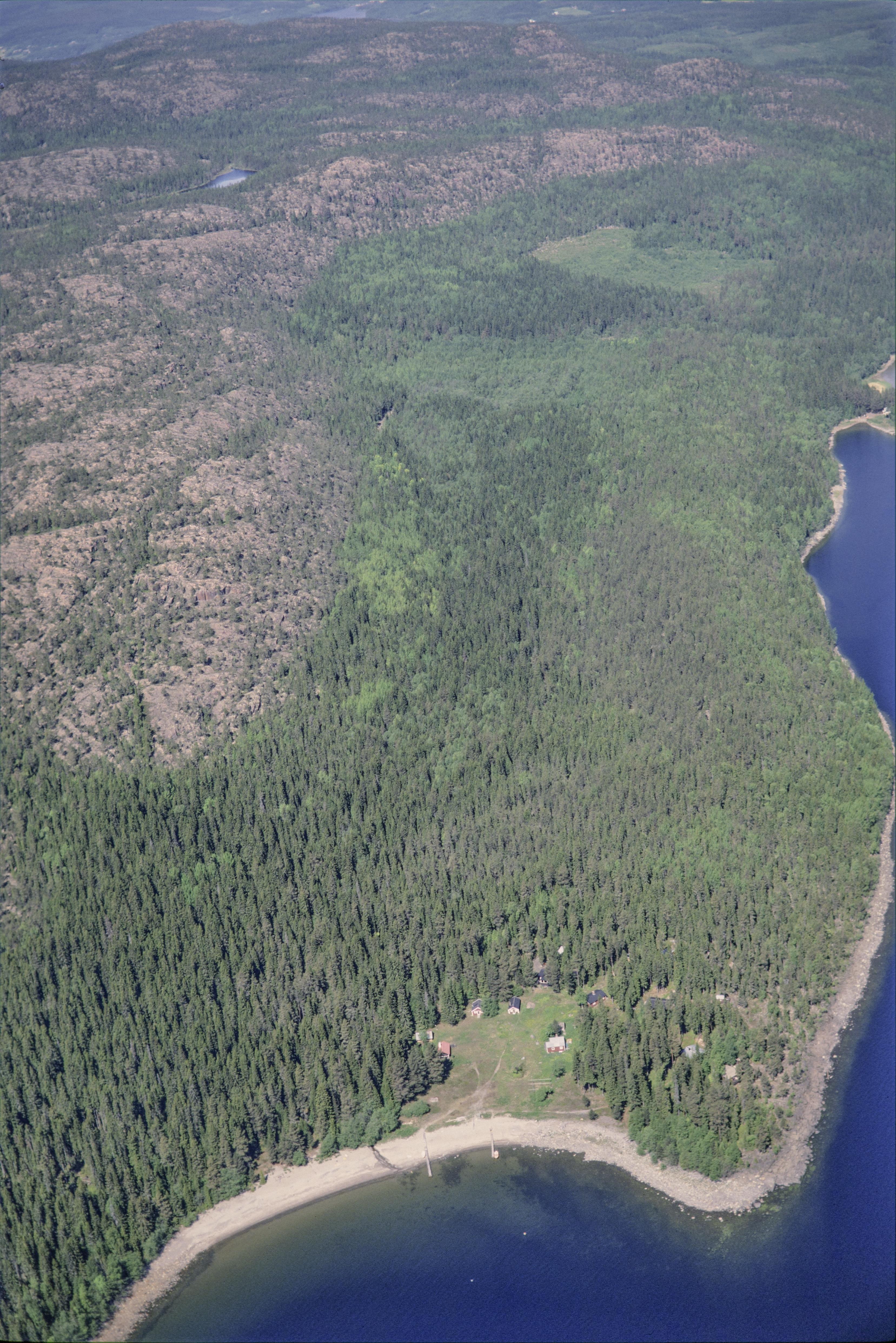 Beskrivning: Höga kustens världsarvsområde. Skuleskogens nationalpark. Till vänster gravrösen RAÄnr Nätra 162:1-3 m.fl. vid Tärnättvattnen och vägen Höga kustenleden. Vid stranden i bildens nedre del fäbodmiljlö Näskebodarna RAÄnr Nätra 159:1. Bilden är tagen mot (väderstreck): NNV
