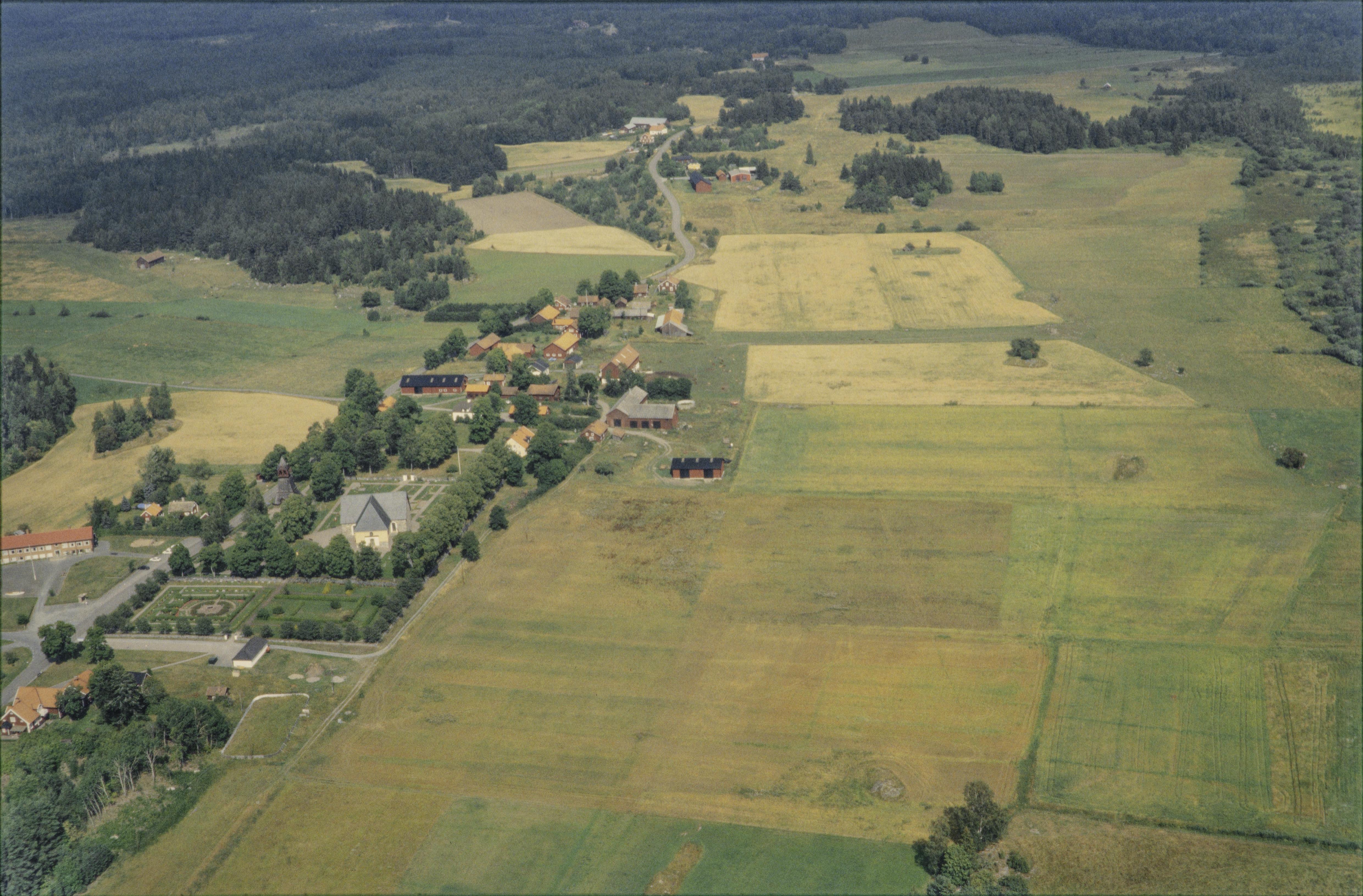 Beskrivning: Till vänster om bildens mitt Films kyrka och kyrkby i Broåns dalgång. Över bildens mitt bytomt RAÄnr Film 254:1. Bilden är tagen mot (väderstreck): N