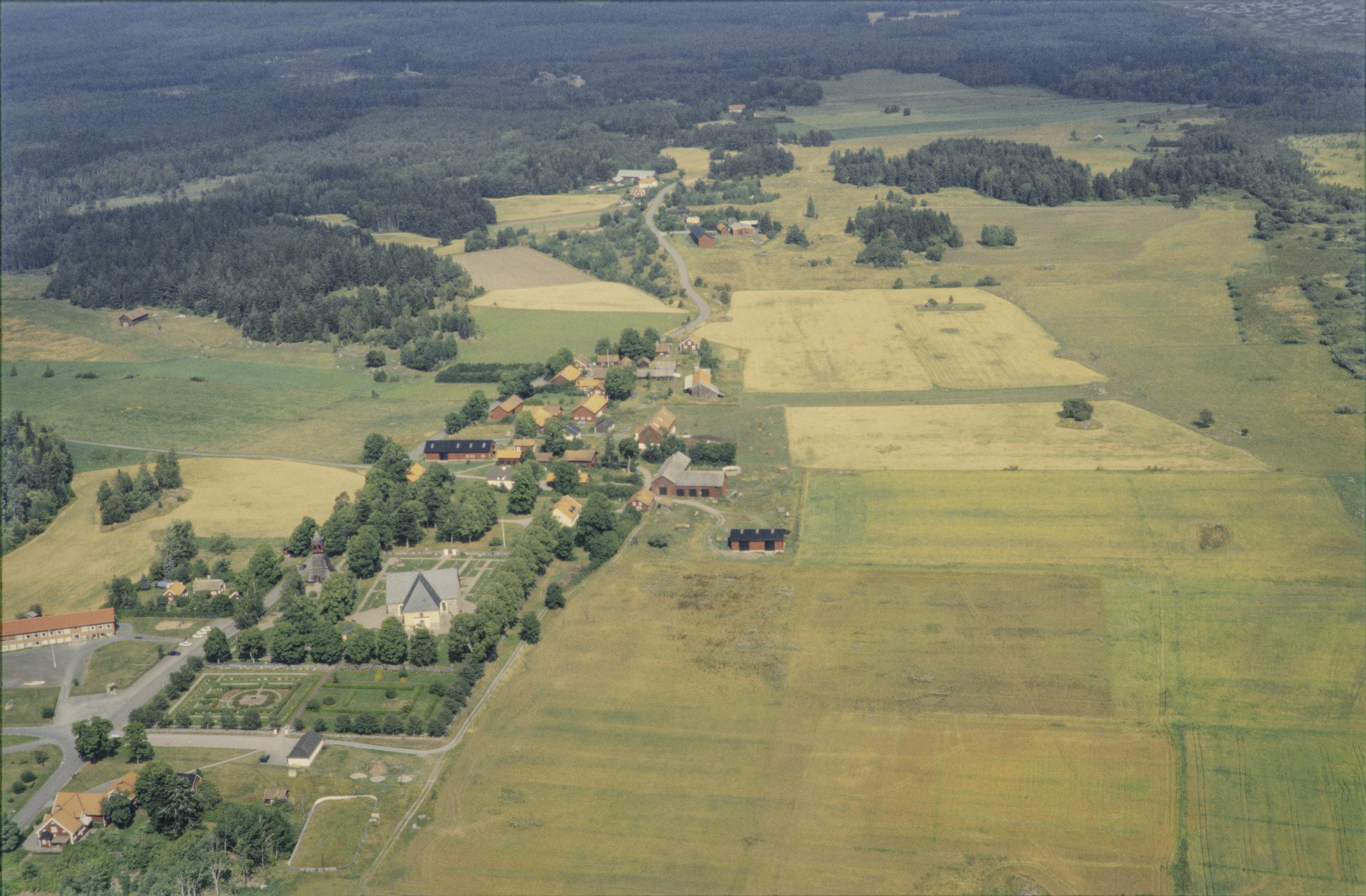 Beskrivning: Nere till vänster Films kyrka och kyrkby i Broåns dalgång. Över bildens mitt bytomt RAÄnr Film 254:1. Bilden är tagen mot (väderstreck): N