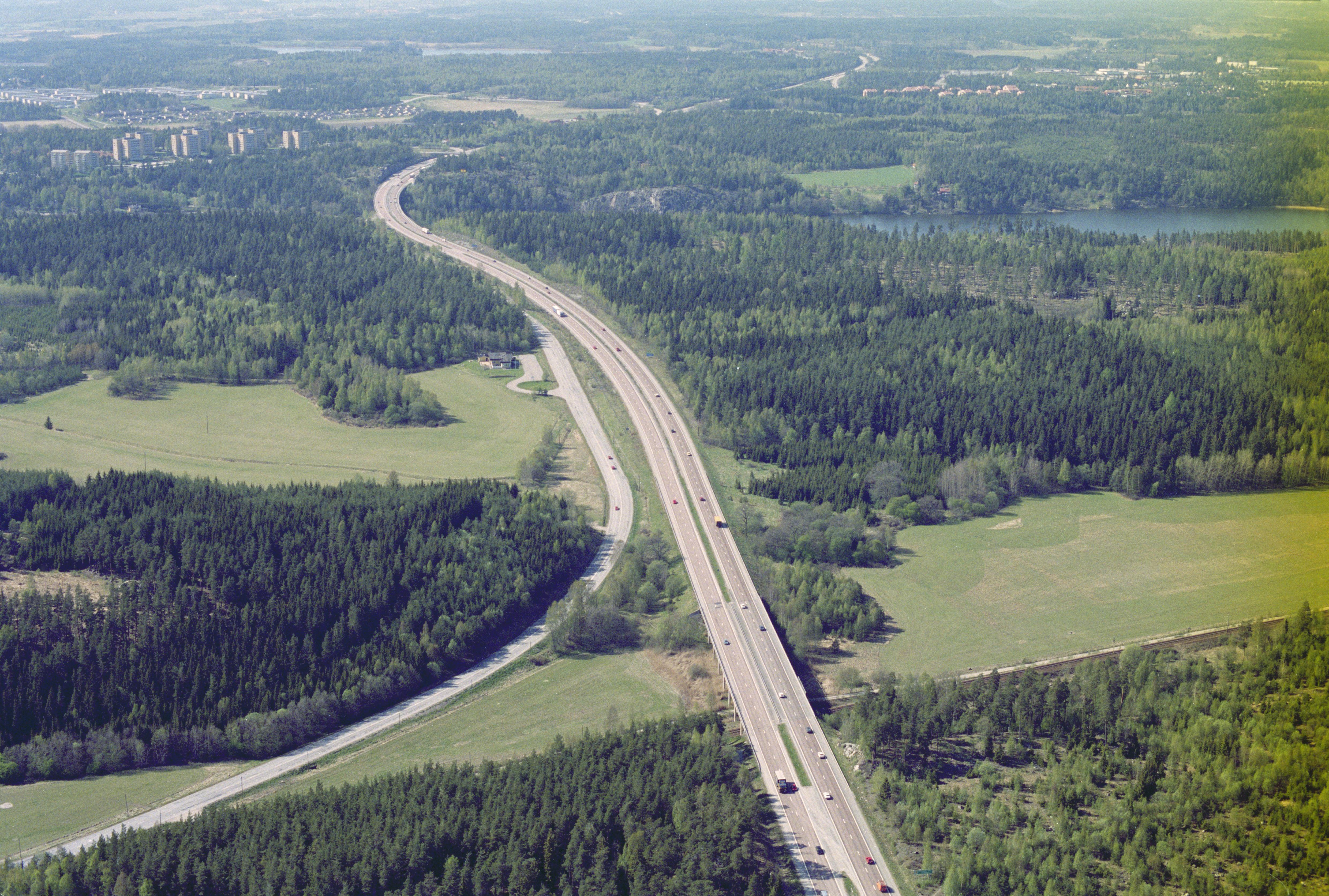 Beskrivning: Stäksön vid Görväln i Mälaren. Väg E18 mot tätorten Kungsängen. Vid bildens mitt färdväg RAÄnr Kungsängen 131:1-2. Bilden är tagen mot (väderstreck): V