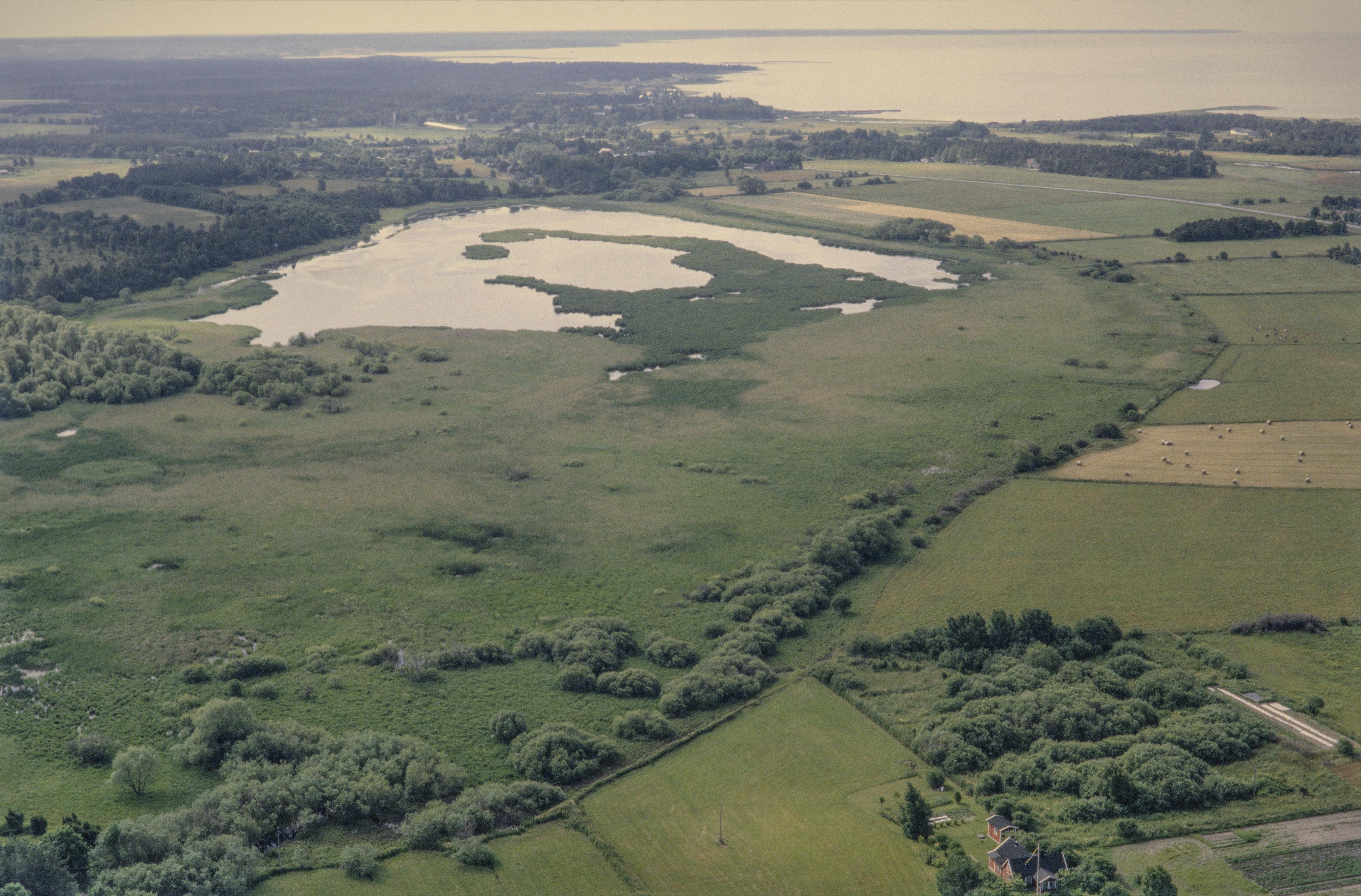 Beskrivning: Paviken, en vikingatida hamn- och handelsplats. I området bo- och gravplatser RAÄnr Västergarn 65:1 m.fl. I bildens övre del Västergarns kyrkby och Kronholmen. Bilden är tagen mot (väderstreck): S