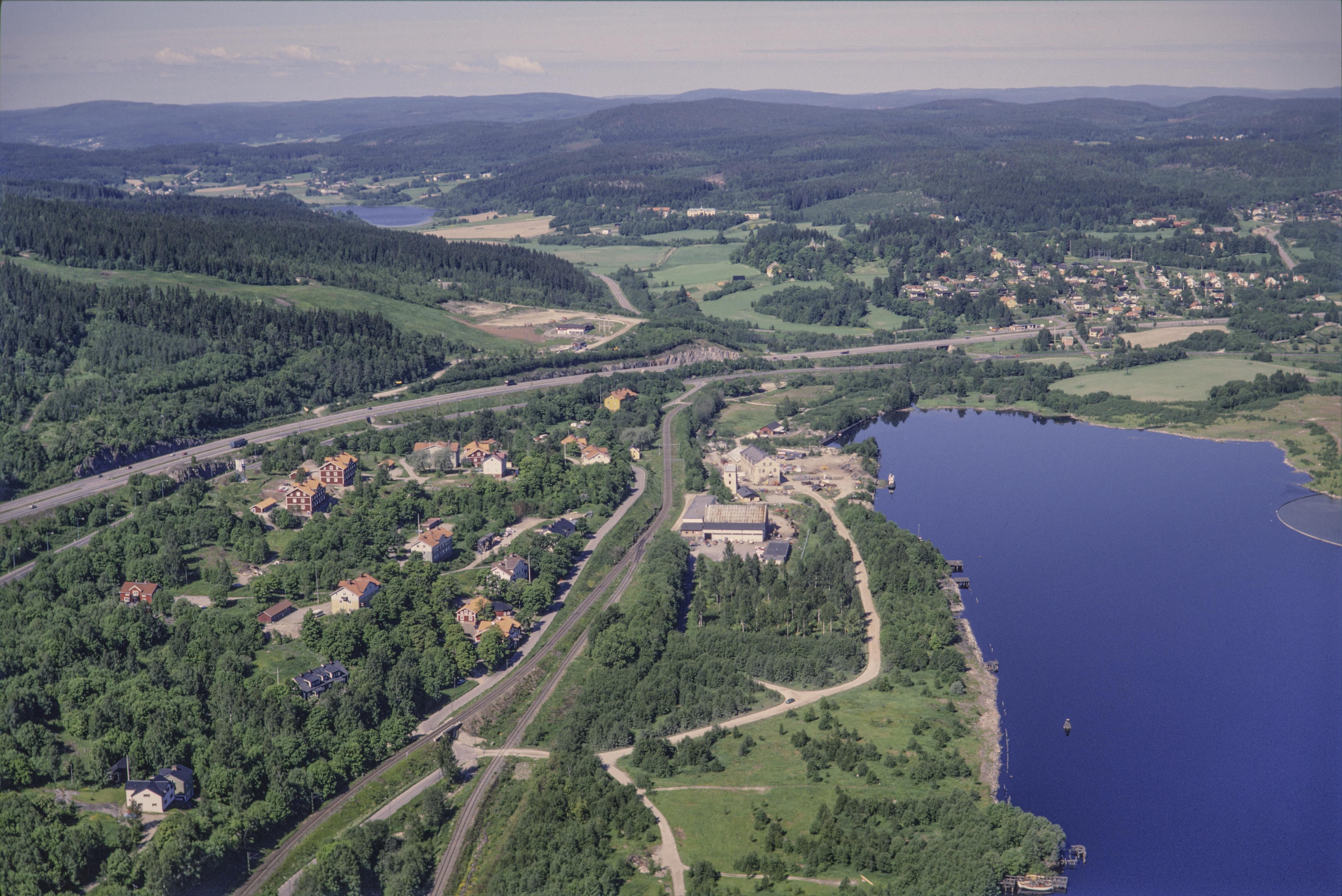 Beskrivning: Nere till höger Skönviken i Alnösundet. I viken går gränsen mellan socknen Skön (i bildens nedre del) och Timrå (i bildens övre del). Sågverksorten Skönvik i bildens nedre del. "Villa Merlo slott" (i området Märlo, väster i Timrå tätort) skymtas till höger över bildens mitt. Bilden är tagen mot (väderstreck): V