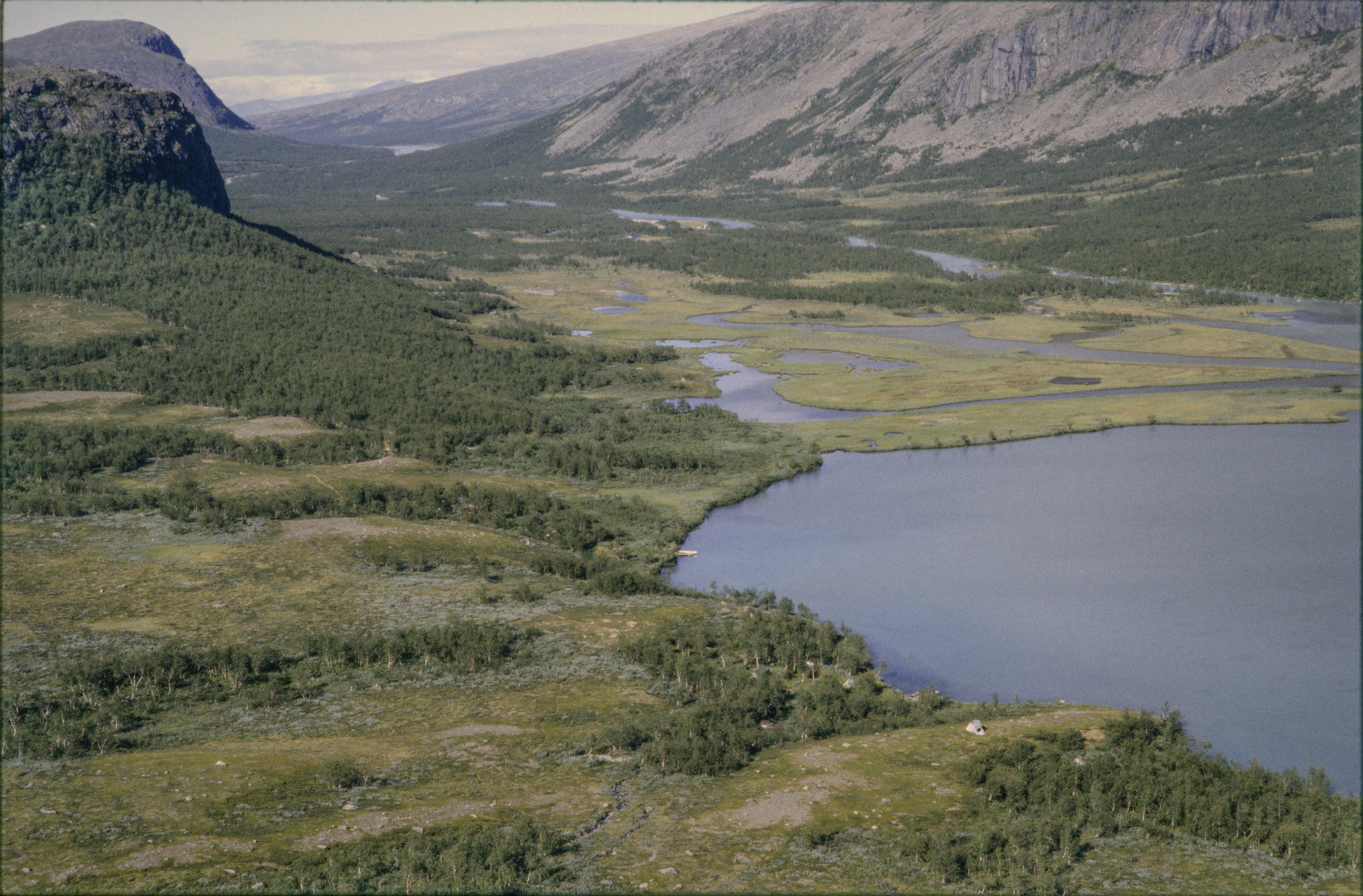 Beskrivning: Samevistet Rinim vid ån Sijddoädnos utlopp i nordvästra ändan av sjön Sitojaure (Sijddojávrre). Till vänster över bildens mitt fångstgrop RAÄnr Jokkmokk 367:1. Området ingår (delvis) i Ultevis fjällurskogs naturreservat, Sareks nationalpark och världsarvet Laponia. Bilden är tagen mot (väderstreck): NV