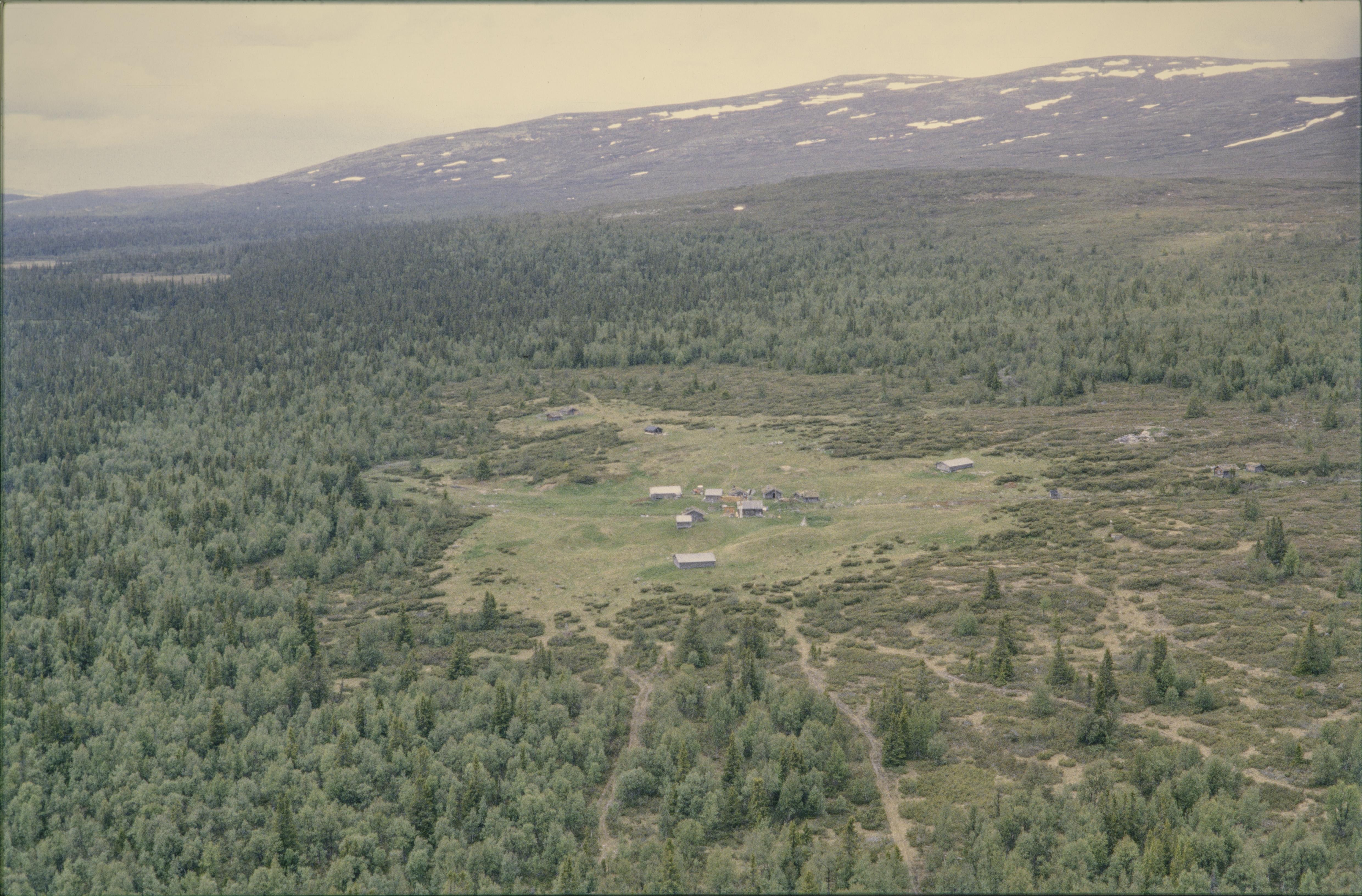 Beskrivning: Fäbodområdet Öster-Arådalen (skrivs även Östra Arådalen) i Ovikfjällens fäbodområde och Arådalens naturreservat. Bilden är tagen mot (väderstreck): N