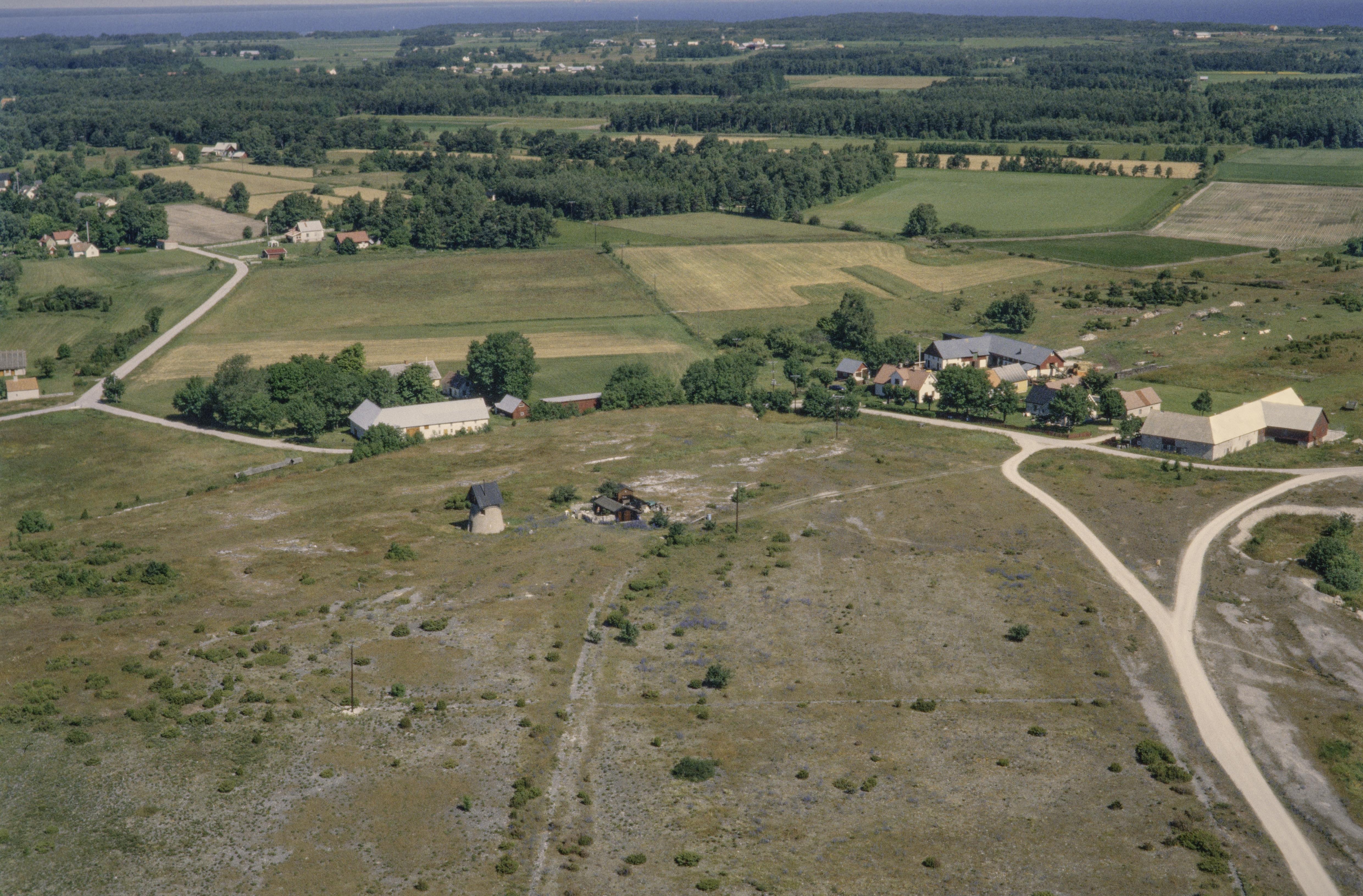 Beskrivning: Sysneudd, norra delen. Vid bildens mitt Sysne by. Socknet Östergarn i bildens övre del. Bilden är tagen mot (väderstreck): N