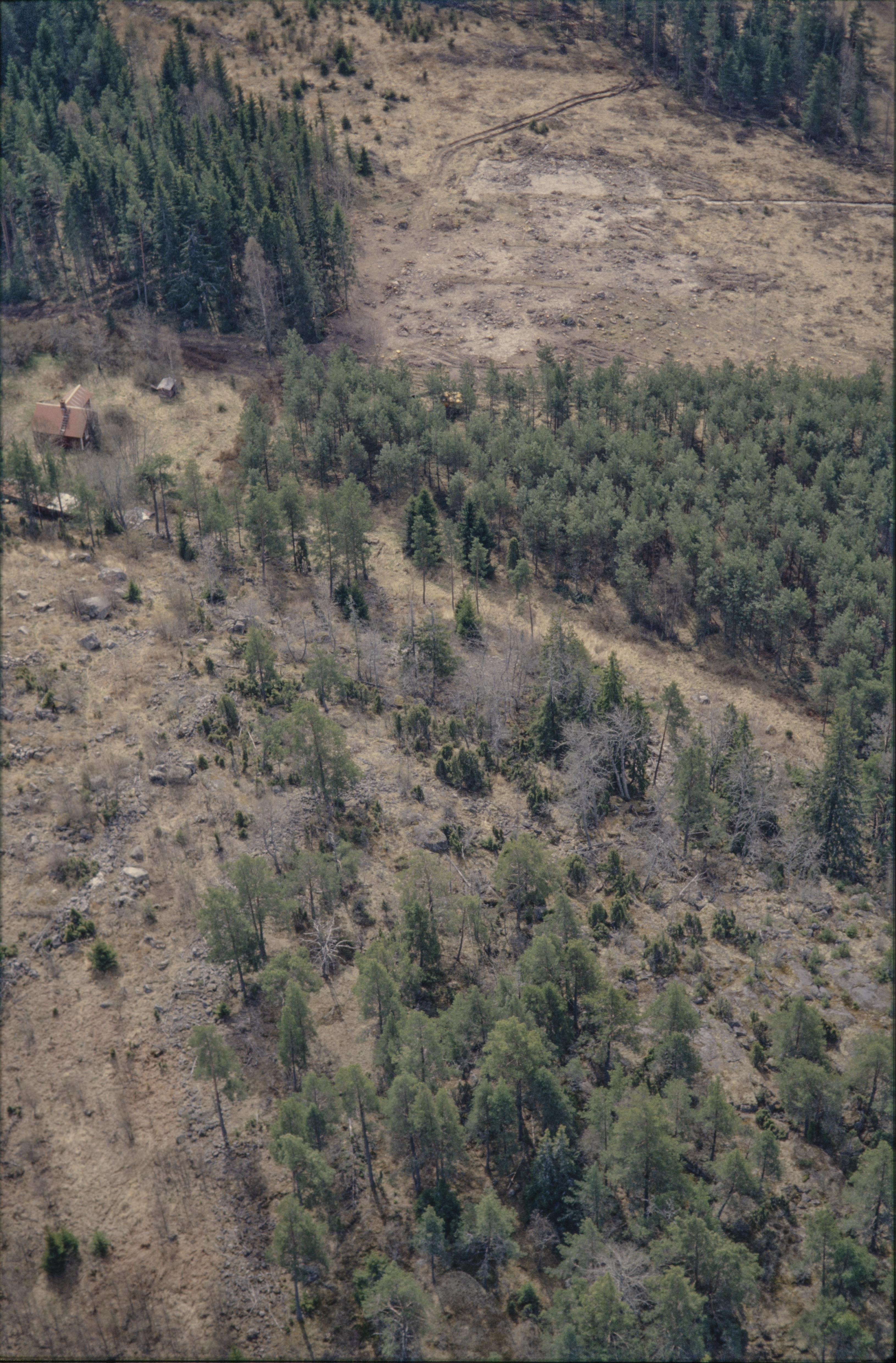 Beskrivning: Rössberga innan bygge av järnväg (Arlandabanan) i Rickebyåns dalgång. Över bildens mitt husgrund RAÄnr Odensala 356:1. Vid bildens mitt boplats Odensala 403:1. I bildens nedre del Rössberga fornborg Odensala 159:1. Bilden är tagen mot (väderstreck): SSO