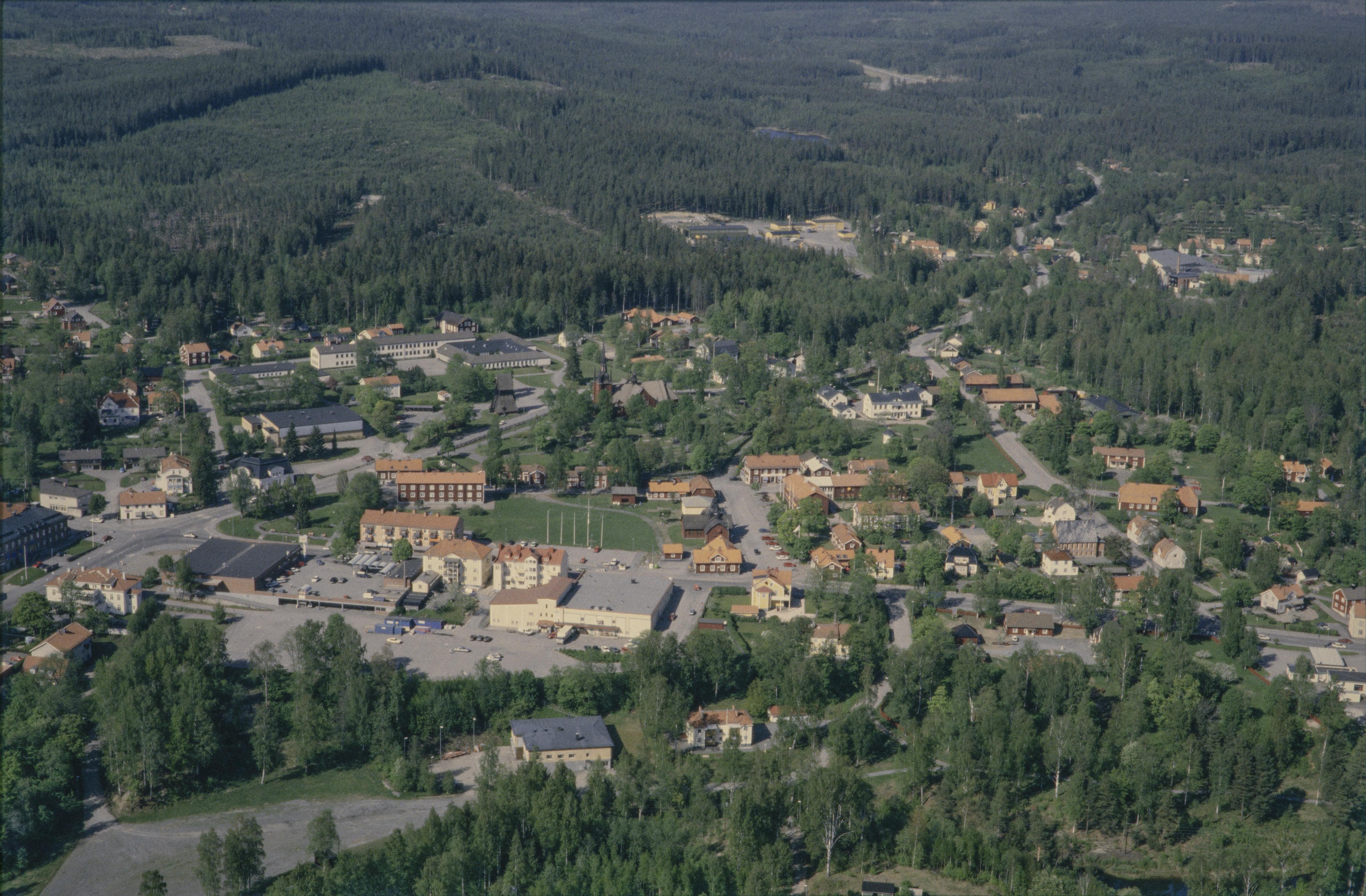 Beskrivning: Kopparbergs tätort vid Garhytteån. Till vänster om bildens mitt Ljusnarsbergs kyrka. Till höger under bildens mitt bergmästarbostället och byggnadsminnet Stora gården RAÄnr Ljusnarsberg 95:1. Bilden är tagen mot (väderstreck): N
