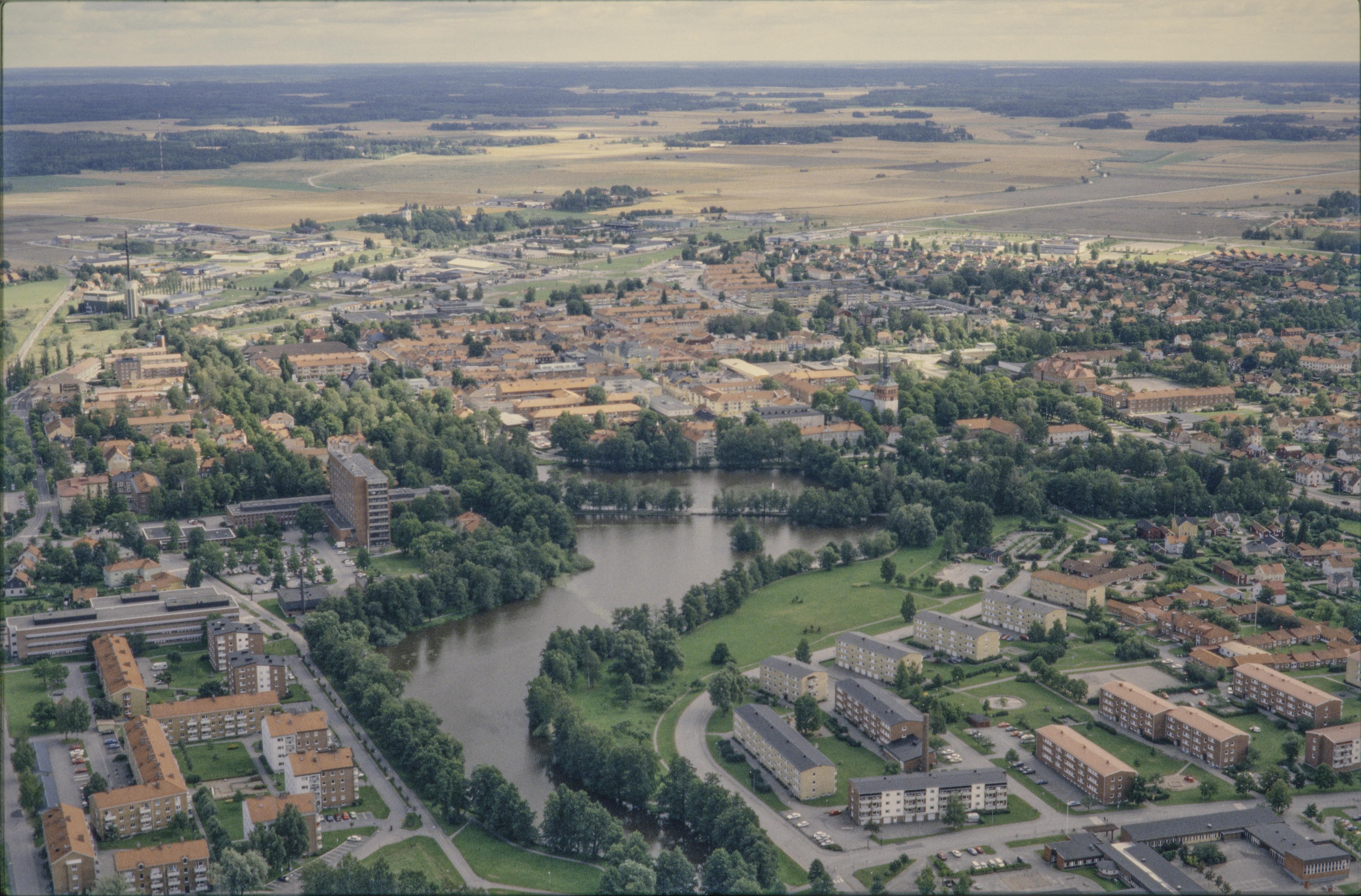 Beskrivning: Sala stad och stadskärna RAÄnr Sala stad 137:1. Till höger om bildens mitt Kristina kyrka vid Ekeby damm och. Lillån. Bilden är tagen mot (väderstreck): SO