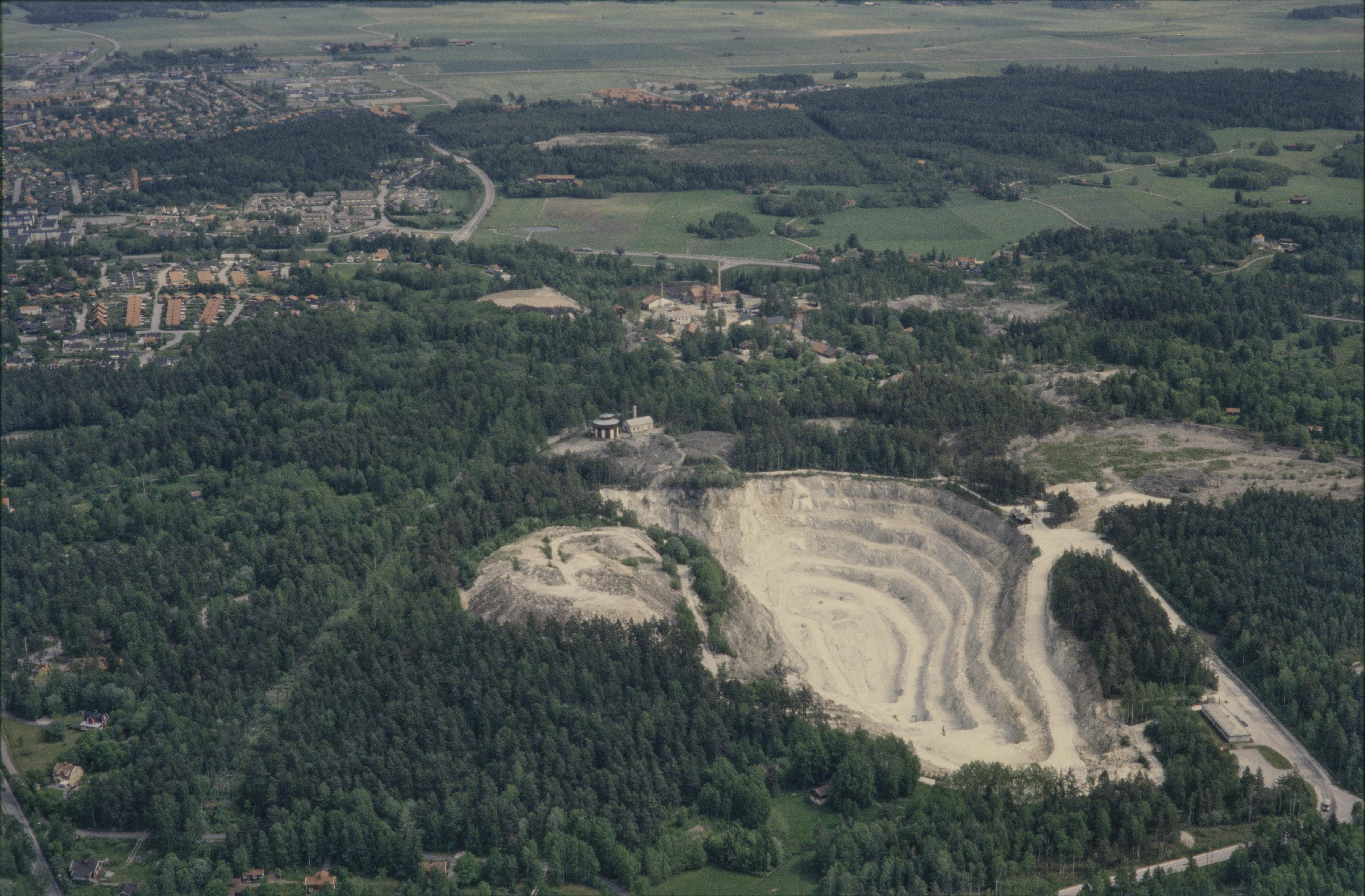 Beskrivning: Sala gruva i sydvästra delen av Sala stad. Nere till höger dolomitmarmorgruvan Tistbrottet. Vid bildens mitt gruvområde RAÄnr Sala stad 215:1-3. Uppe till vänster Sala stad. Uppe till höger Sala silvergruva. Bilden är tagen mot (väderstreck): OSO