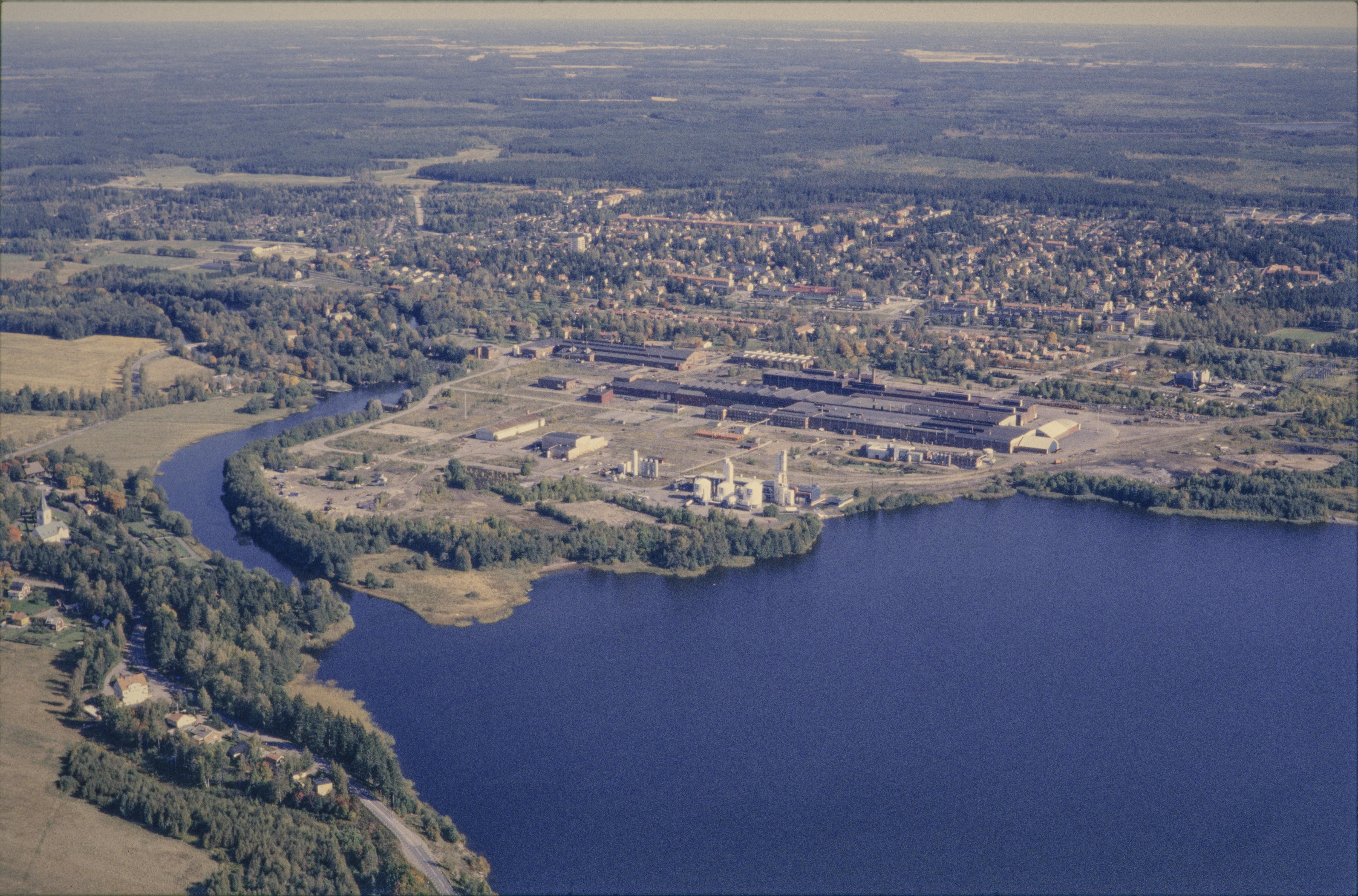 Beskrivning: Surahammars tätort och bruk RAÄnr Sura 49:1 vid Östersjön och byggnadsminnet Strömsholms kanal. Bilden är tagen mot (väderstreck): NO