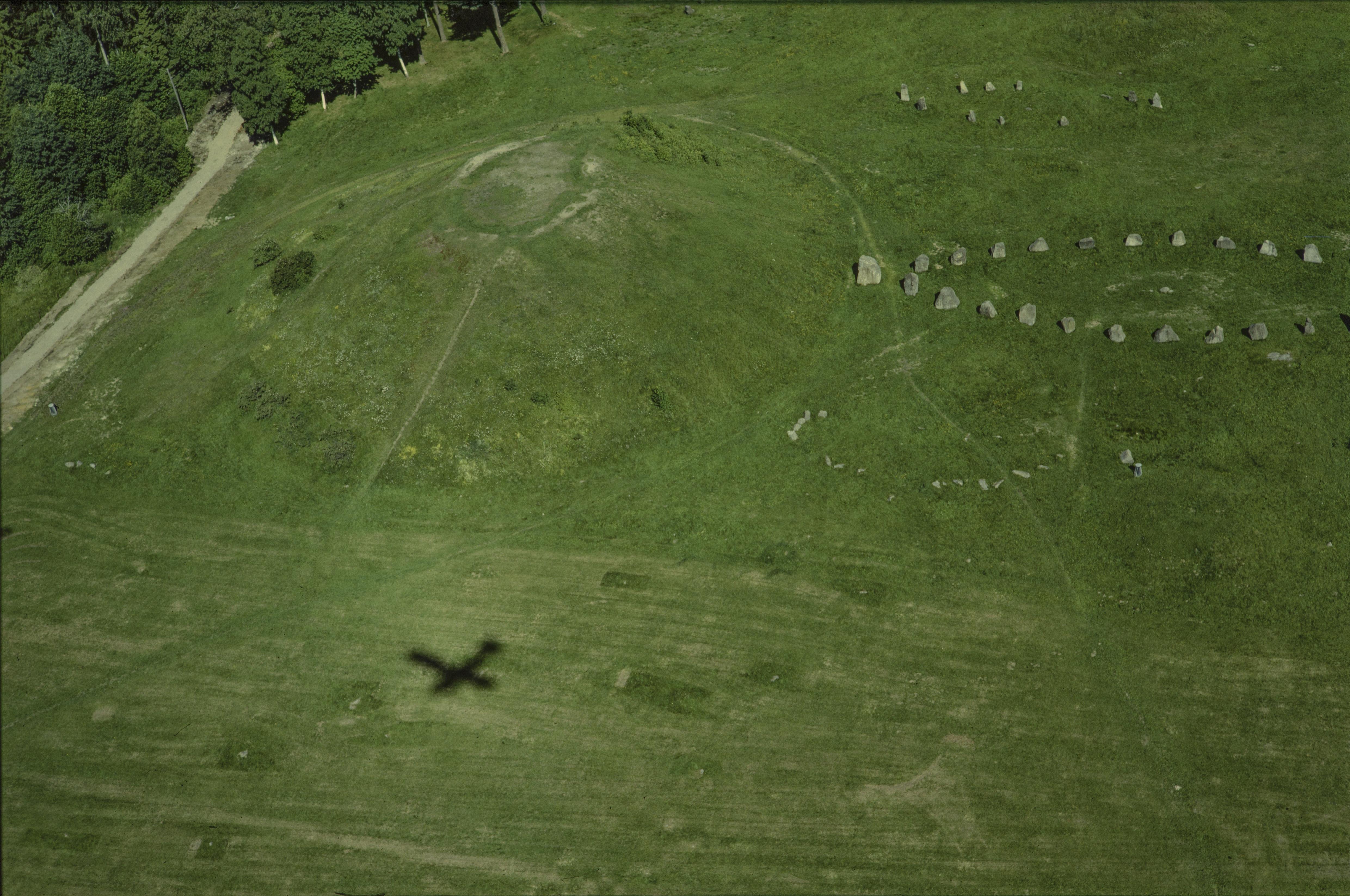 Anmärkning (övrig): Flygplanets skugga är med i bilden och avsikten var att illustrera flygfotografering av fornminnen. En av bilderna som togs vid detta fotograferingstillfället användes 1984-1985 som affischbild vid en utställning som bl.a. omhandlade detta tema.