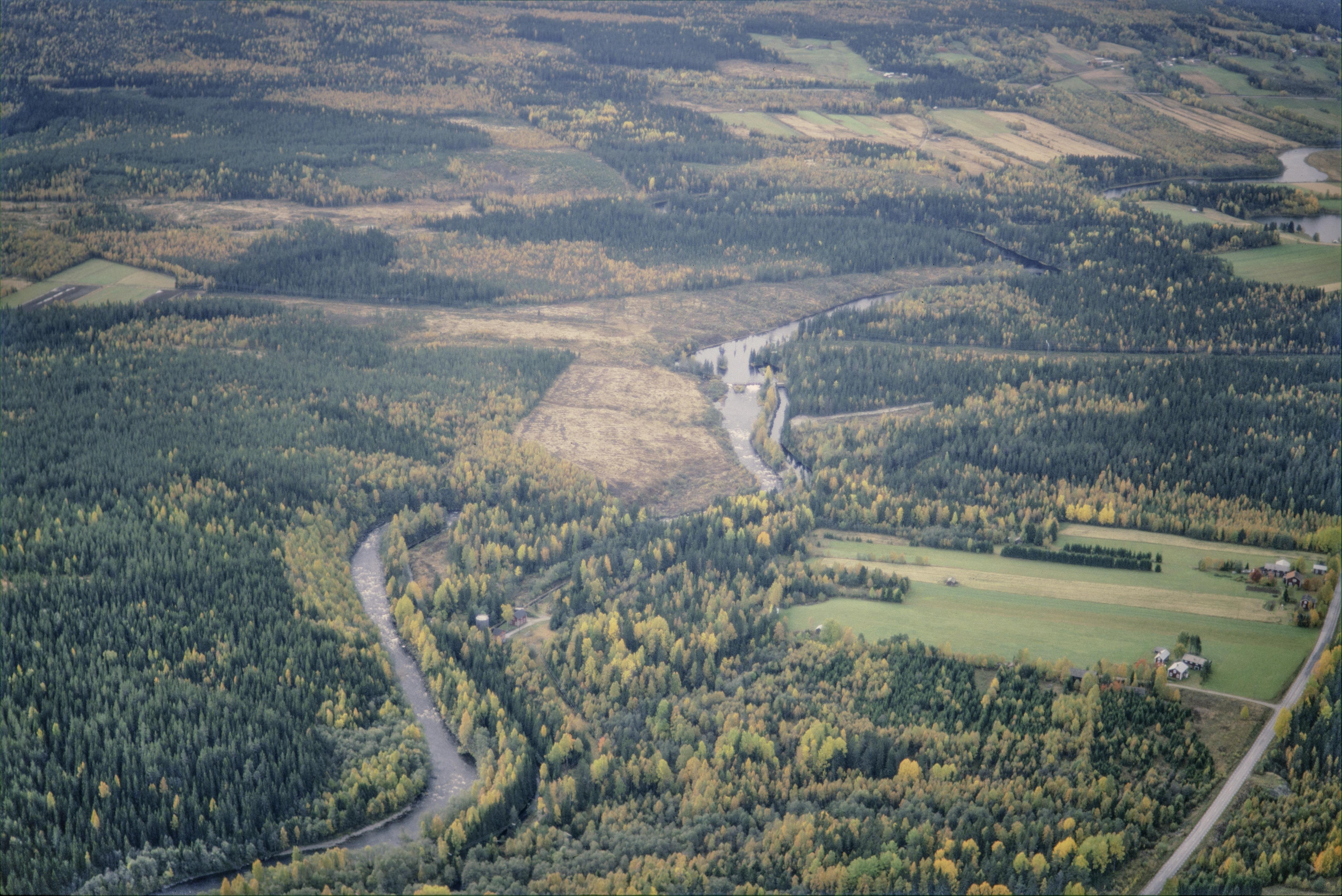 Beskrivning: Moälvens dalgång väster om orten Gottne. Vid bildens mitt Gottne kraftverk vid gränsen mot socknet Anundsjö (till höger och i bildens övre del). Till vänster om bildens mitt området Söderåfors med sågverkslämningar RAÄnr Mo 47:1. Bilden är tagen mot (väderstreck): SSV