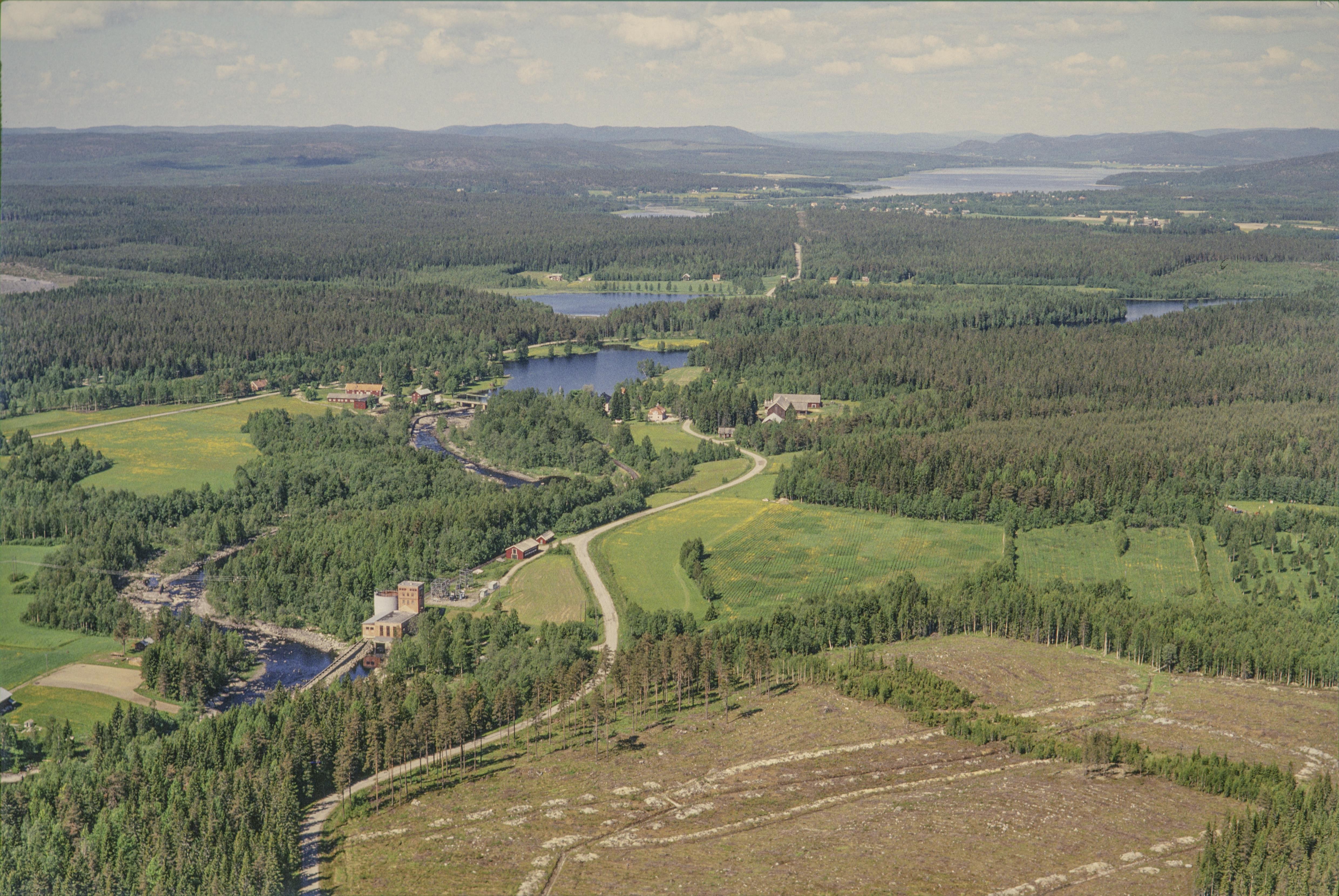 Beskrivning: Gideåbruk (skrivs även Gideå bruk) i Gideälven. Gideåbruks kraftverk under bildens mitt. Över bildens mitt område med järnbrukslämningar RAÄnr Gideå 5:1. Bilden är tagen mot (väderstreck): NV