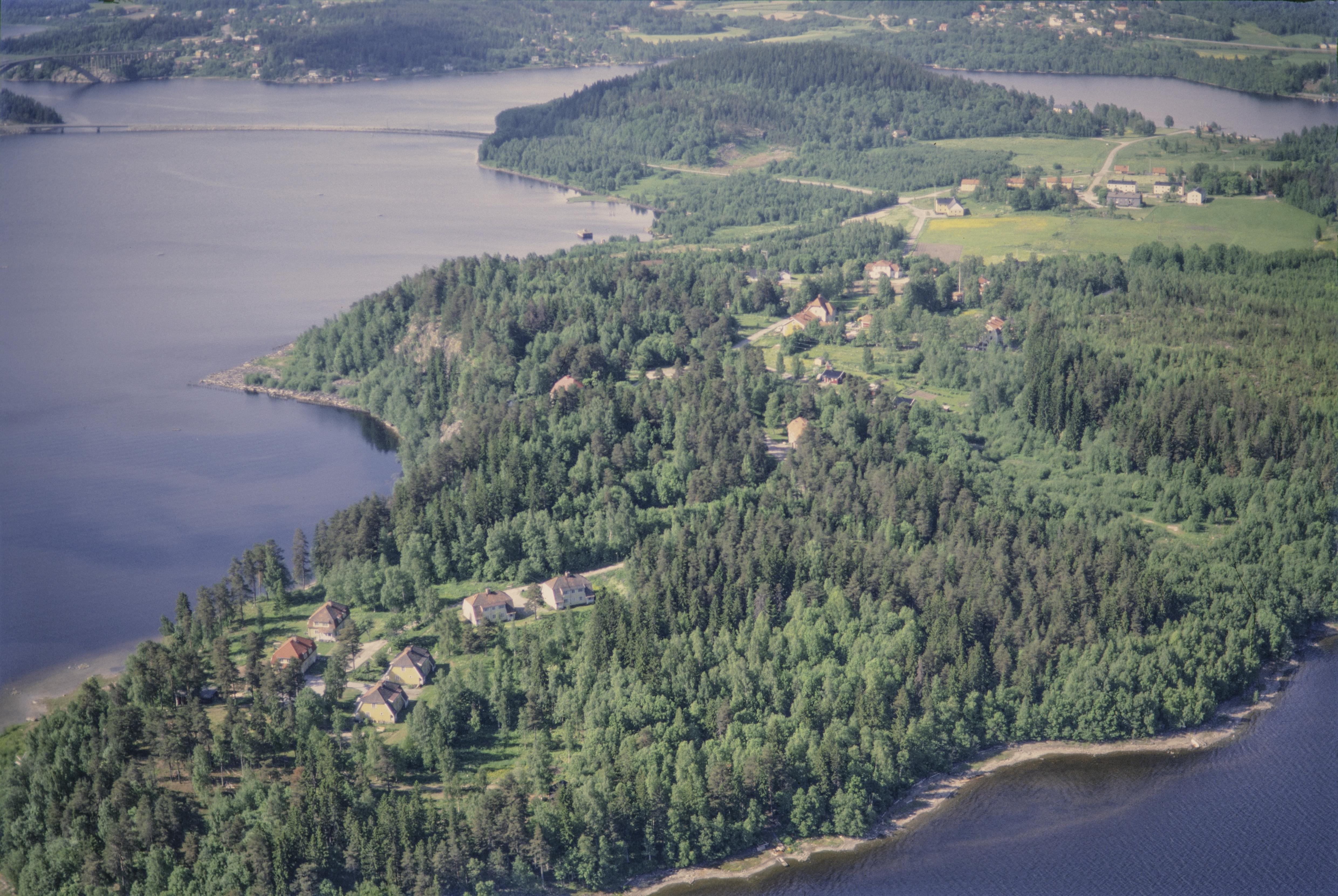 Beskrivning: Ön Svanön i Ångermanälvens dalgång. I och vid Svanö by (skrivs även Svanöbruk) finns byggnader och lämningar efter sågverk och sulfitfabrik, RAÄnr Kramfors 68:1. Korpberget i bildens nedre del. Bilden är tagen mot (väderstreck): SV