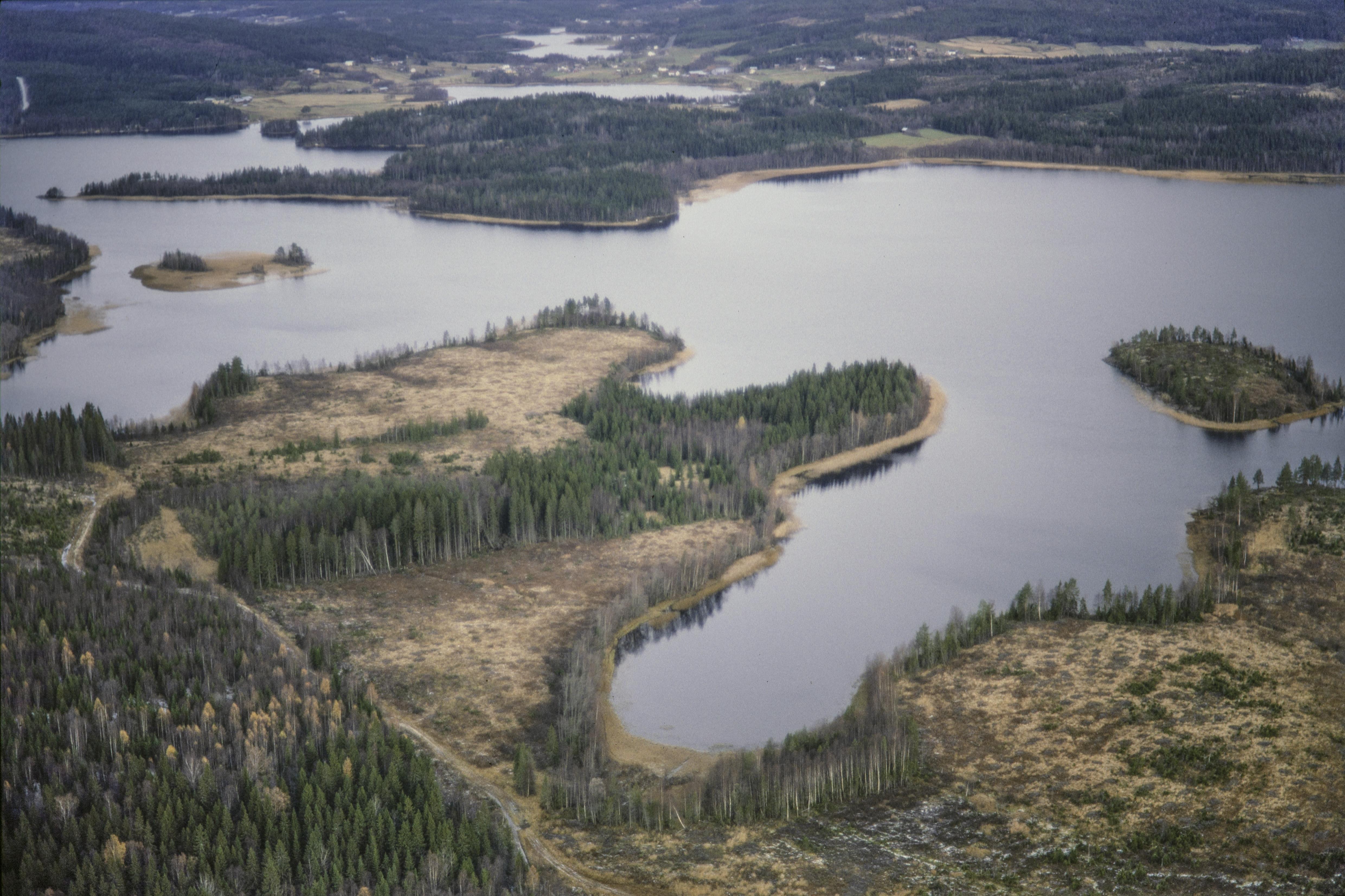 Beskrivning: Höga kustens världsarvområde. Lappnäset i Storsjön med boplats, gravplats och fossil åker RAÄnr Nora 5:1-3, 6:1-2 m.fl. Till vänster i bildens övre del områdena Gallsätter, Bocknäset och Långudden. Gränsen mot socknet Skog (i bildens övre kant) går över Långudden. Bilden är tagen mot (väderstreck): NV