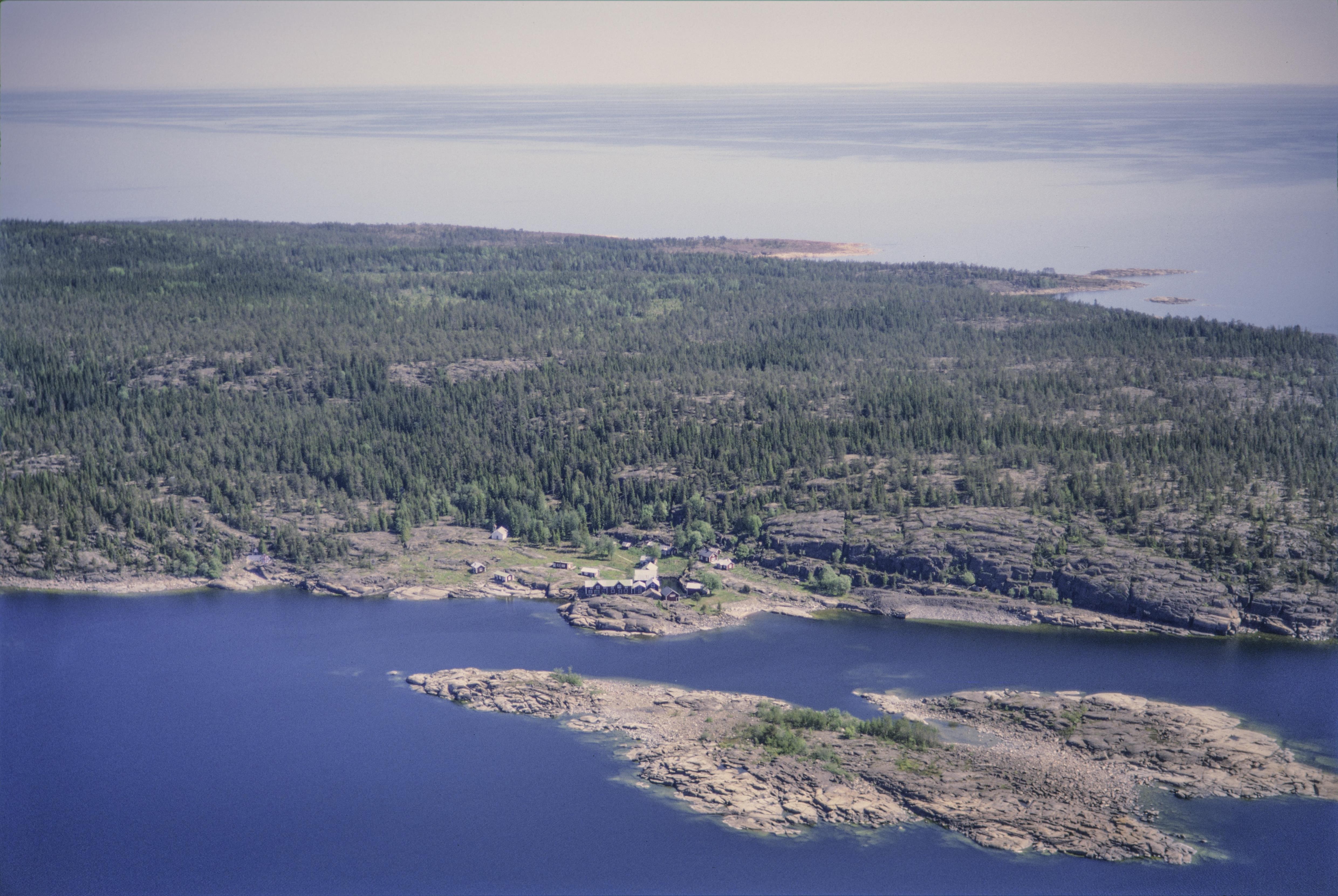 Beskrivning: Världsarvsområdet Höga kusten. Södra Ulvön i Ullångersfjärden. Vid bildens mitt fiskeläget Marviksgrunnan med Marviksgrunnans kapell (skrivs även Grunnans kapell). Vid stranden till höger om fiskeläget gruvområde RAÄnr Nätra 71:1. Nere till höger holmen Sönnerstbuten. Bilden är tagen mot (väderstreck): ONO