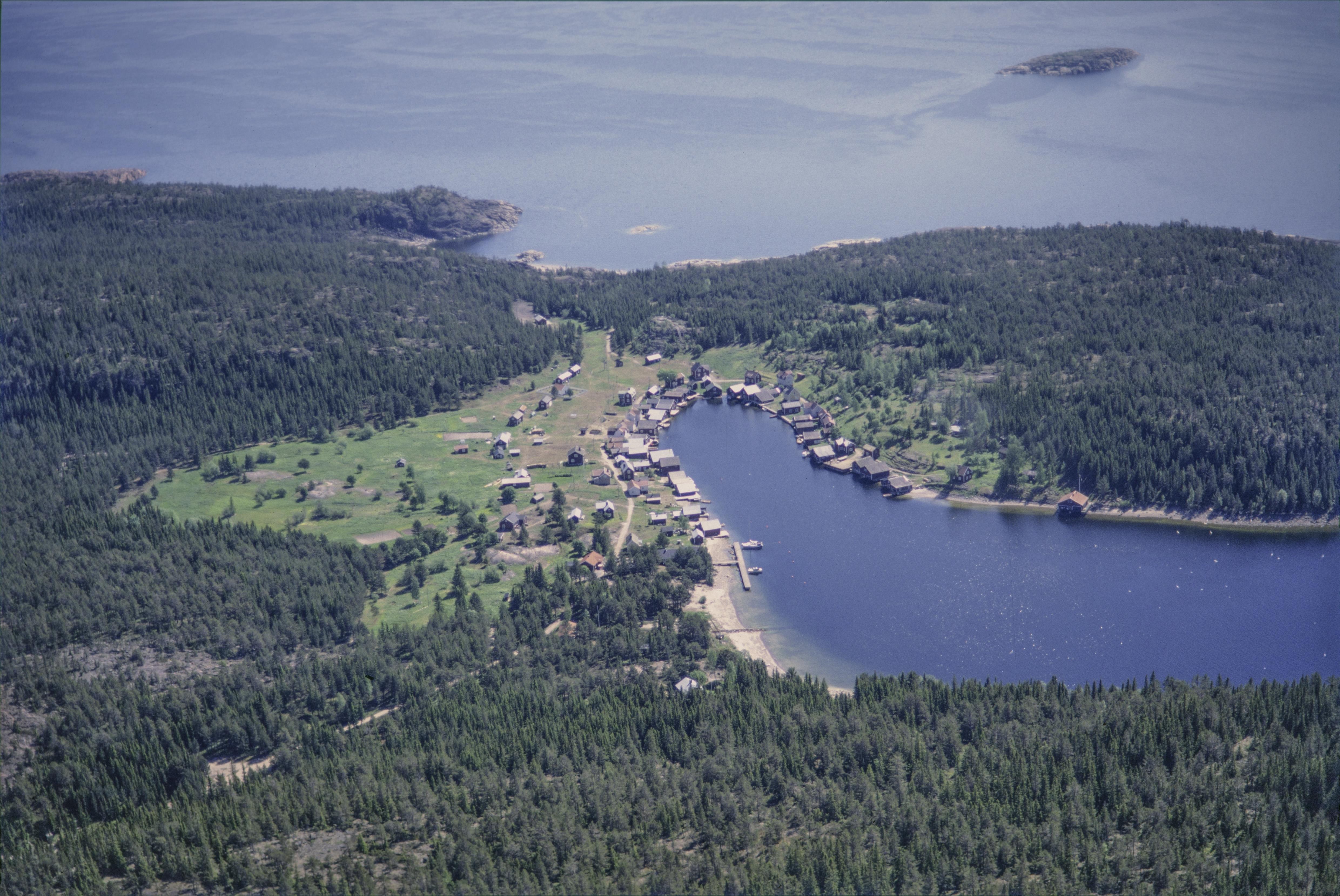Beskrivning: Höga kustens världsarvsområde. Ön Trysunda i naturreservat öster om Nätrafjärden. I bildens mitt Trysunda fiskeläge med Trysunda kapell. Bilden är tagen mot (väderstreck): SSO