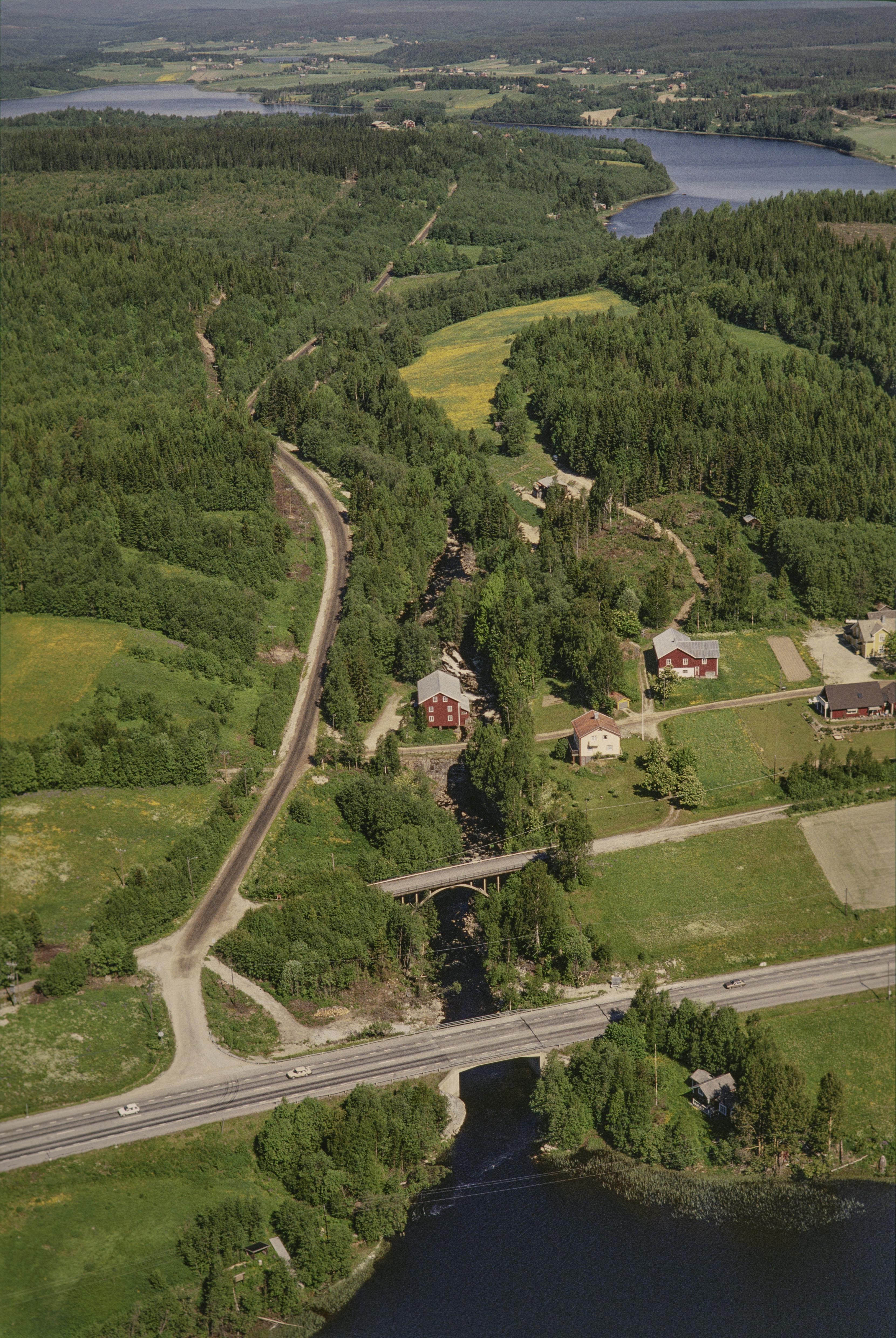 Beskrivning: Sörbrynge by vid Bryngån mellan Högbysjön (i bildens övre del) och Ovansjösjön (i bildens nedre del). Under bildens mitt kvarnområdet Bryngekvarn vid bro RAÄnr Arnäs 37:1. Området Ovansjö i bildens högra kant. Bilden är tagen mot (väderstreck): NNV