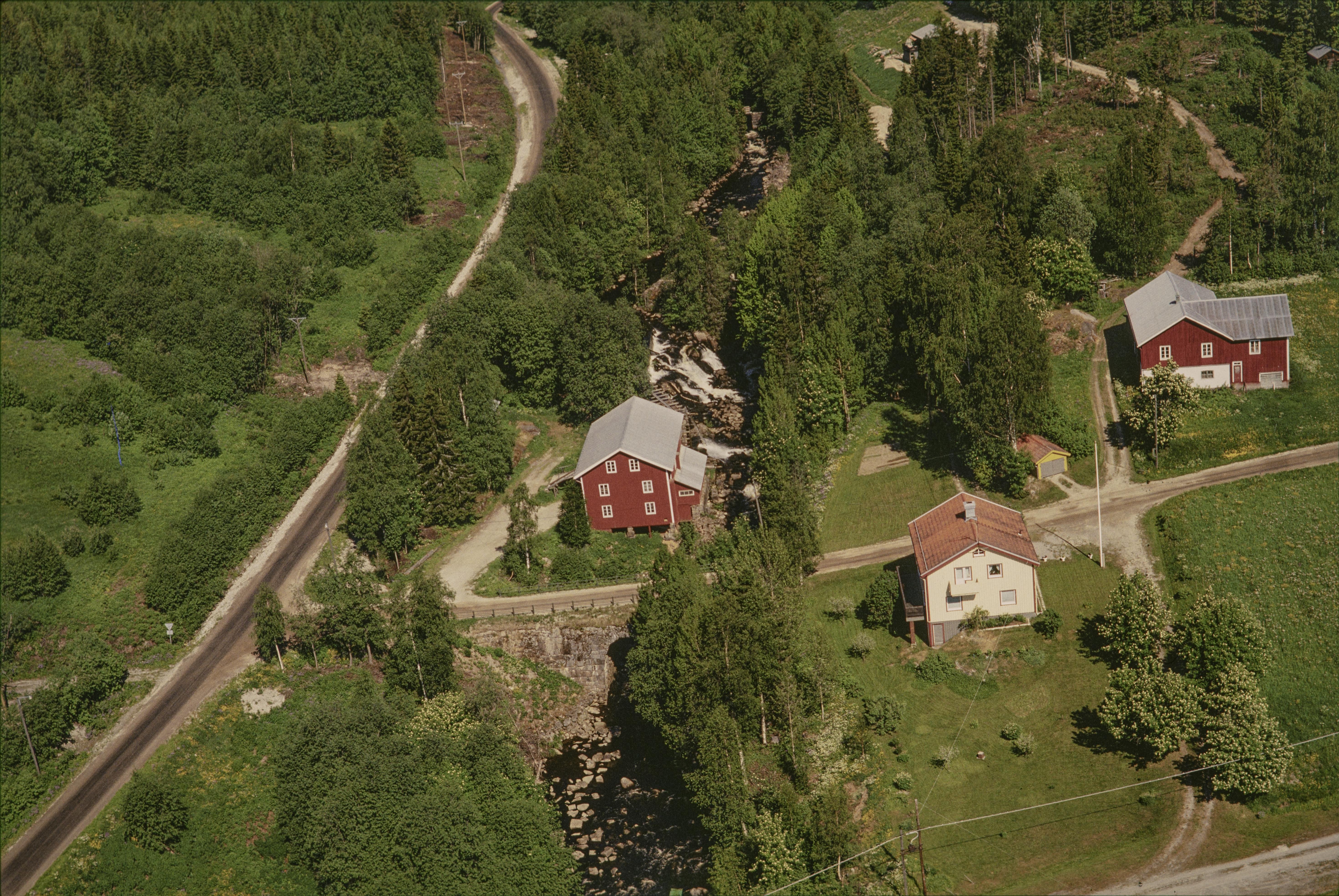 Beskrivning: Sörbrynge by vid Bryngån mellan Högbysjön och Ovansjösjön, väster om byn Ovansjön. I bildens mitt kvarnområdet Bryngekvarn vid bro RAÄnr Arnäs 37:1. Bilden är tagen mot (väderstreck): NNV